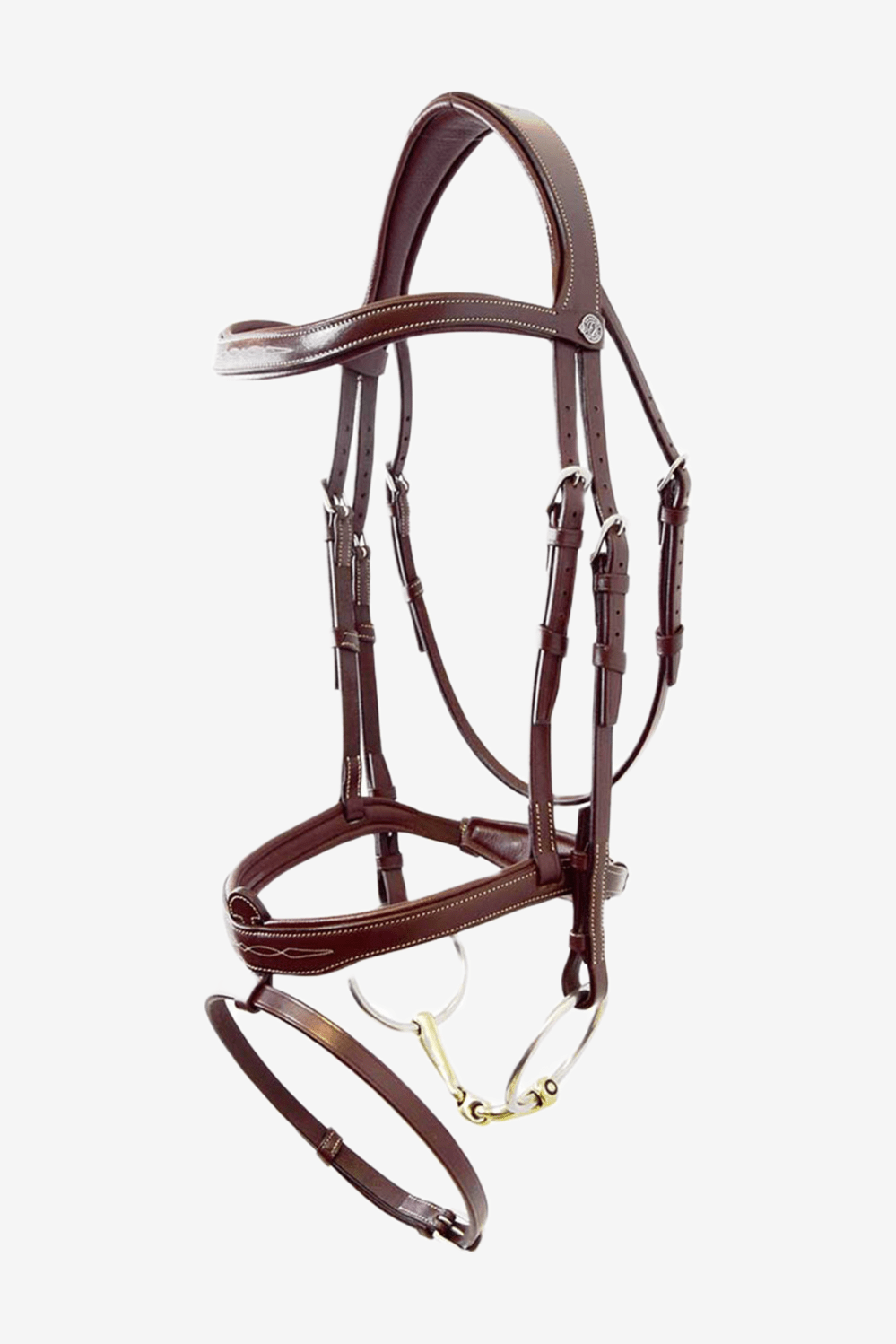 Trense mit Aachener Nasenriemen von Signature by Antarès. Eine Trense mit gepolstertem Genickstück und Nasenriemen. Stickerei am Stirnband und Nasenriemen verleiht der Trense ein klassisch elegantes Aussehen. Schnallen aus rostfreiem Stahl.
