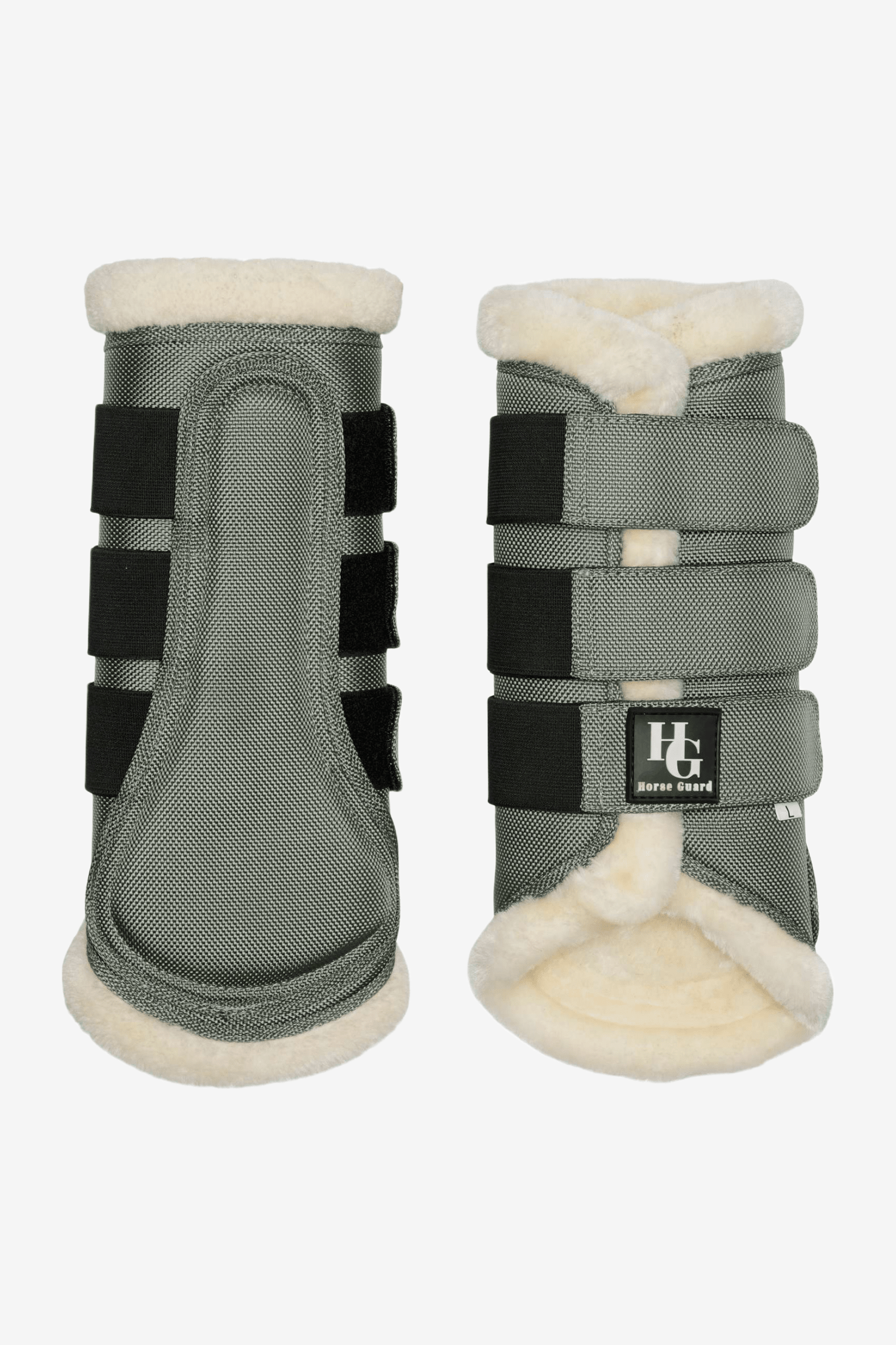 Tre kraftiga spännen med kardborre. Förstärkta på insidan för att skydda benen ordentligt. Horse Guard-logotypen finns på det nedre spännet.