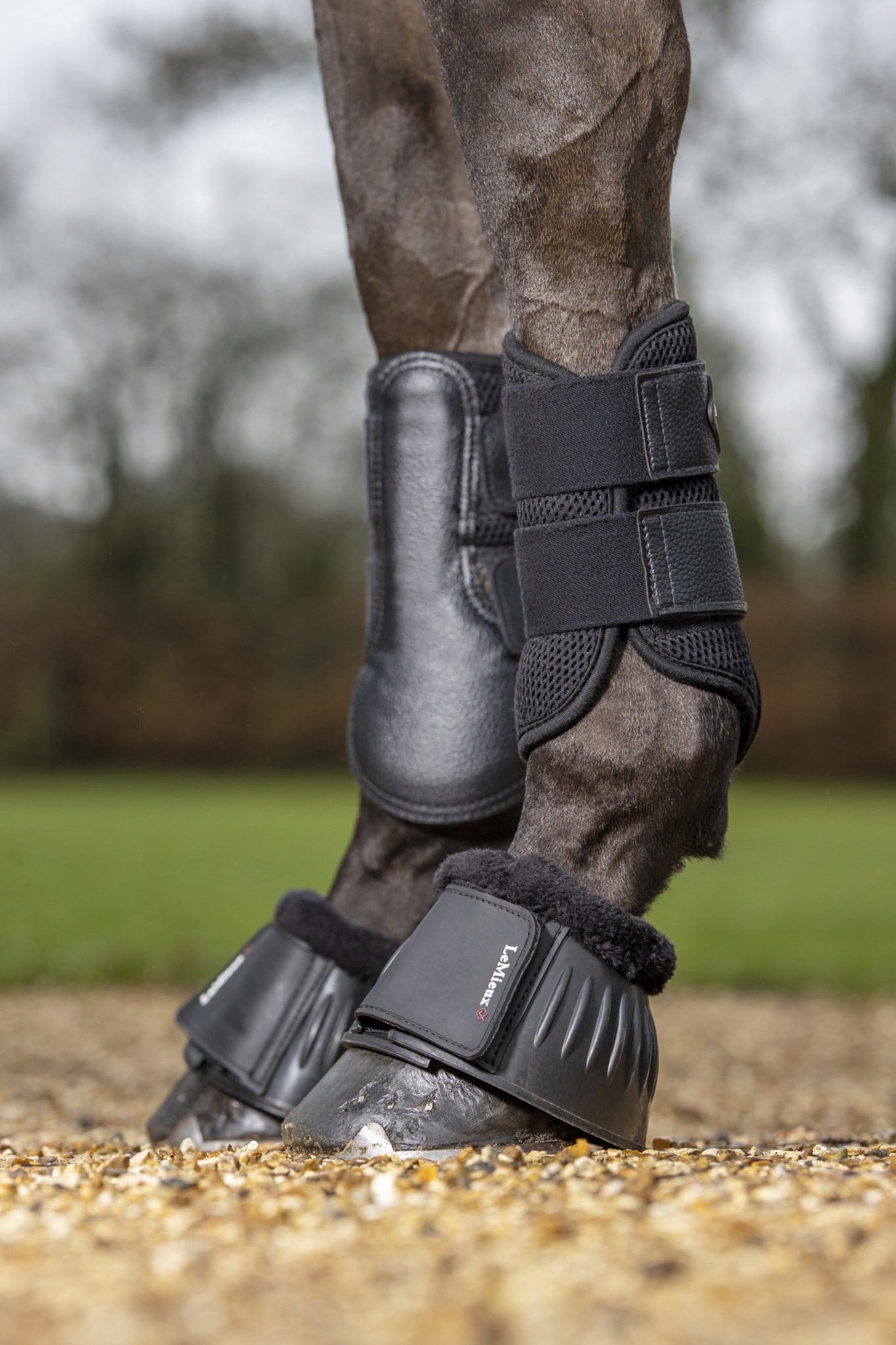 Unglaublich smarte Gamaschen von LeMieux in hervorragender Qualität für Training und Wettkampf. Leichter Schutz mit perforiertem, atmungsaktivem Innenfutter, schützenden Fasern aus PU-Leder und praktischen PU-Lederriemen.