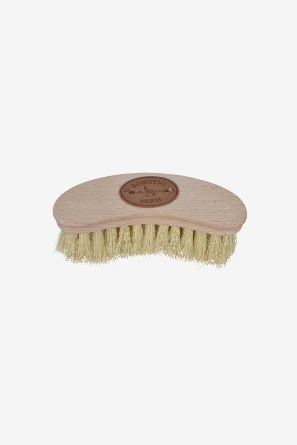 Tailliert geformte, griffige Kardätsche. Hergestellt aus Buchenholz mit Borsten aus natürlicher weißer Kaktusfaser, auch Tampicofaser genannt. Ergonomisch gestaltet, wodurch die Bürste angenehm in der Hand liegt. Antistatisch mit mittelfesten Fasern, die für die meisten Pferde geeignet sind. Erhältlich in zwei Borstenlängen: 5 cm und 7 cm. Mittelweiche Borsten, ideal für weniger verschmutzte Beine und auch zur Fellpflege. Eine der beliebtesten Bürsten von Borstiq Farm.