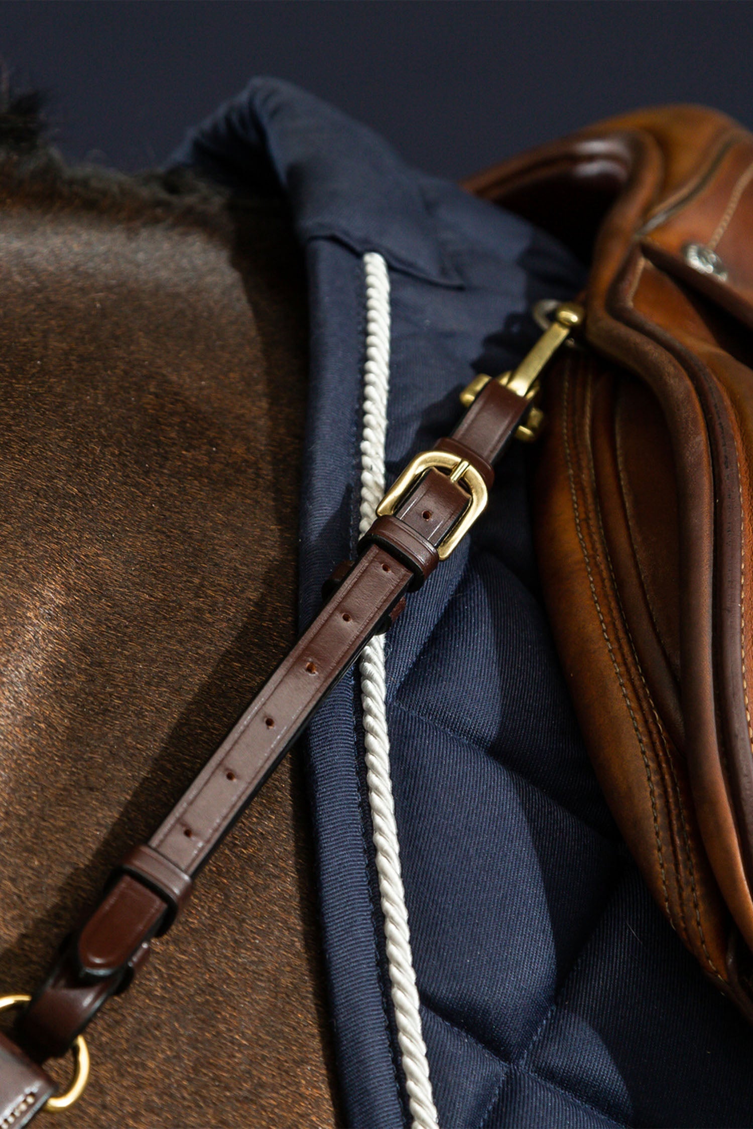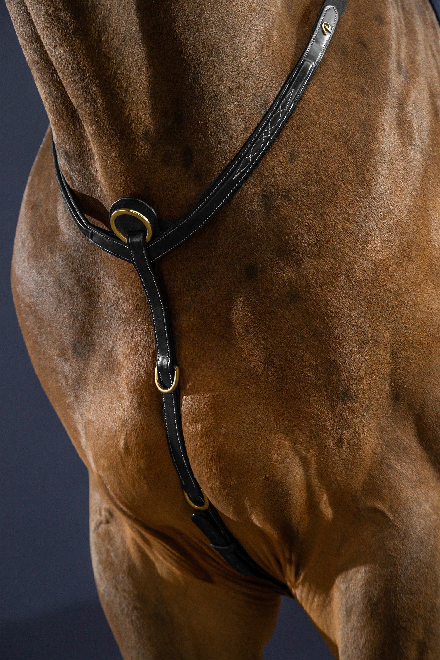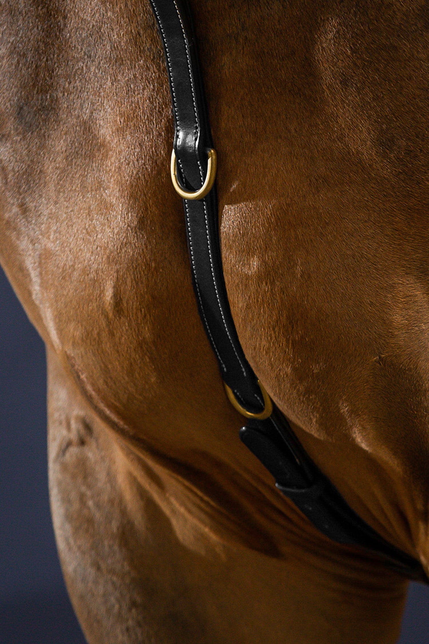 Als stilvolles Detail ist das Leder leicht erhöht. Befestigung für kurzen Martingal ist vorhanden und separat erhältlich.
