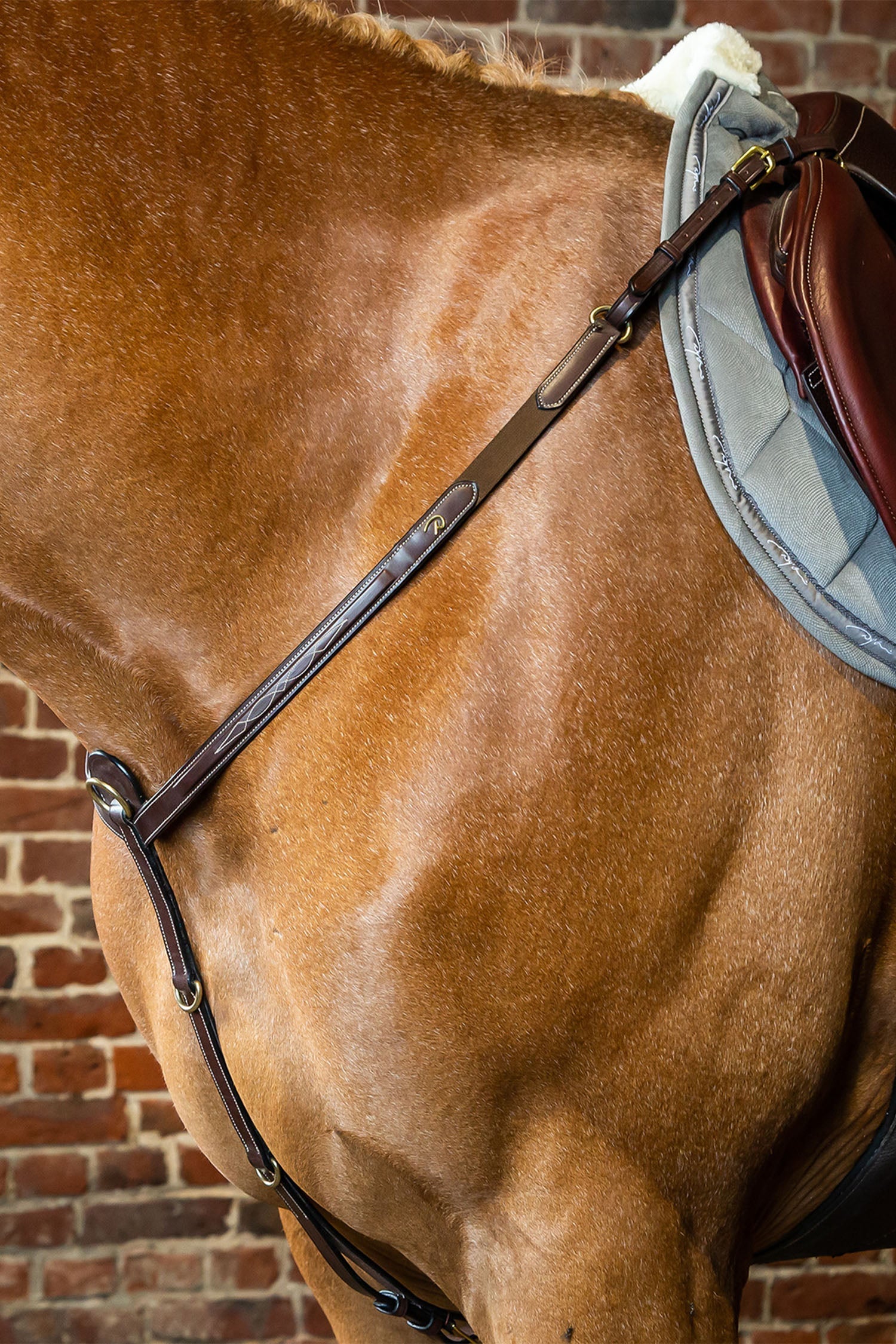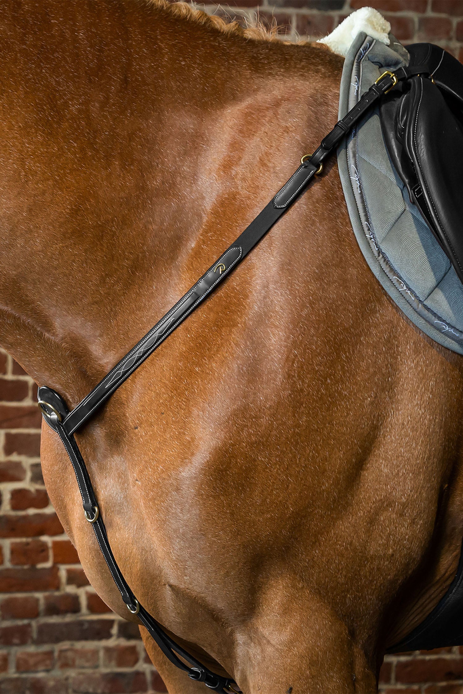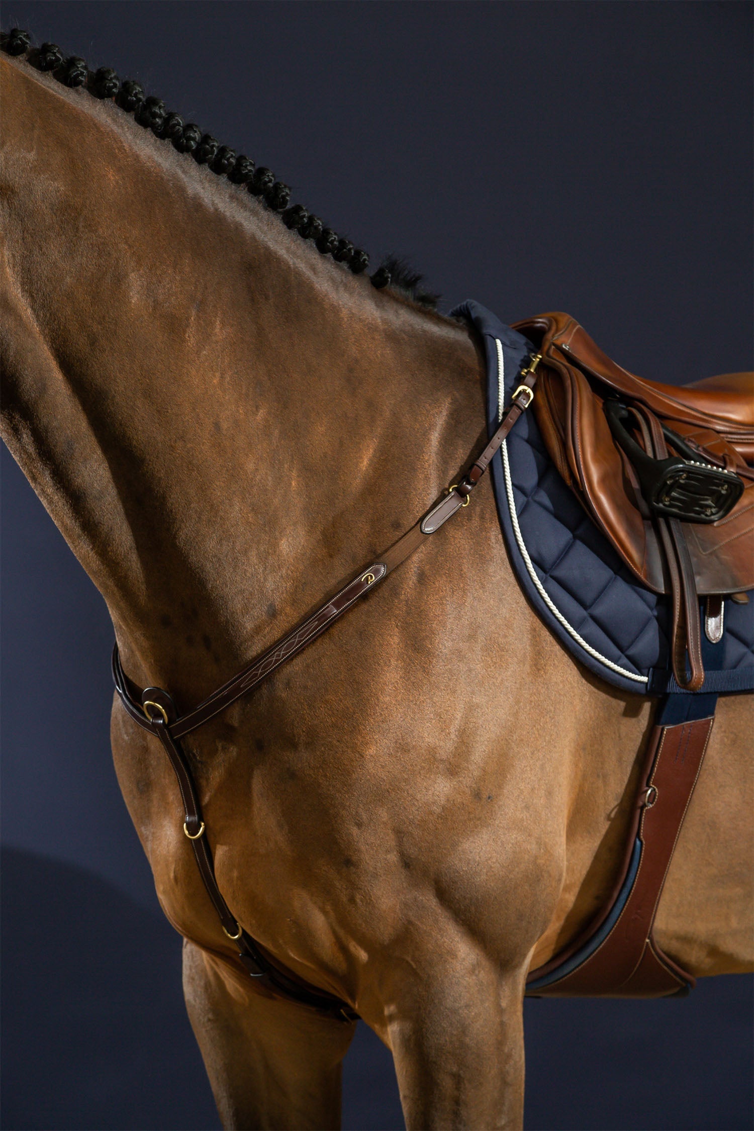 Als stilvolles Detail ist das Leder leicht erhöht. Befestigung für kurzen Martingal ist vorhanden und separat erhältlich.