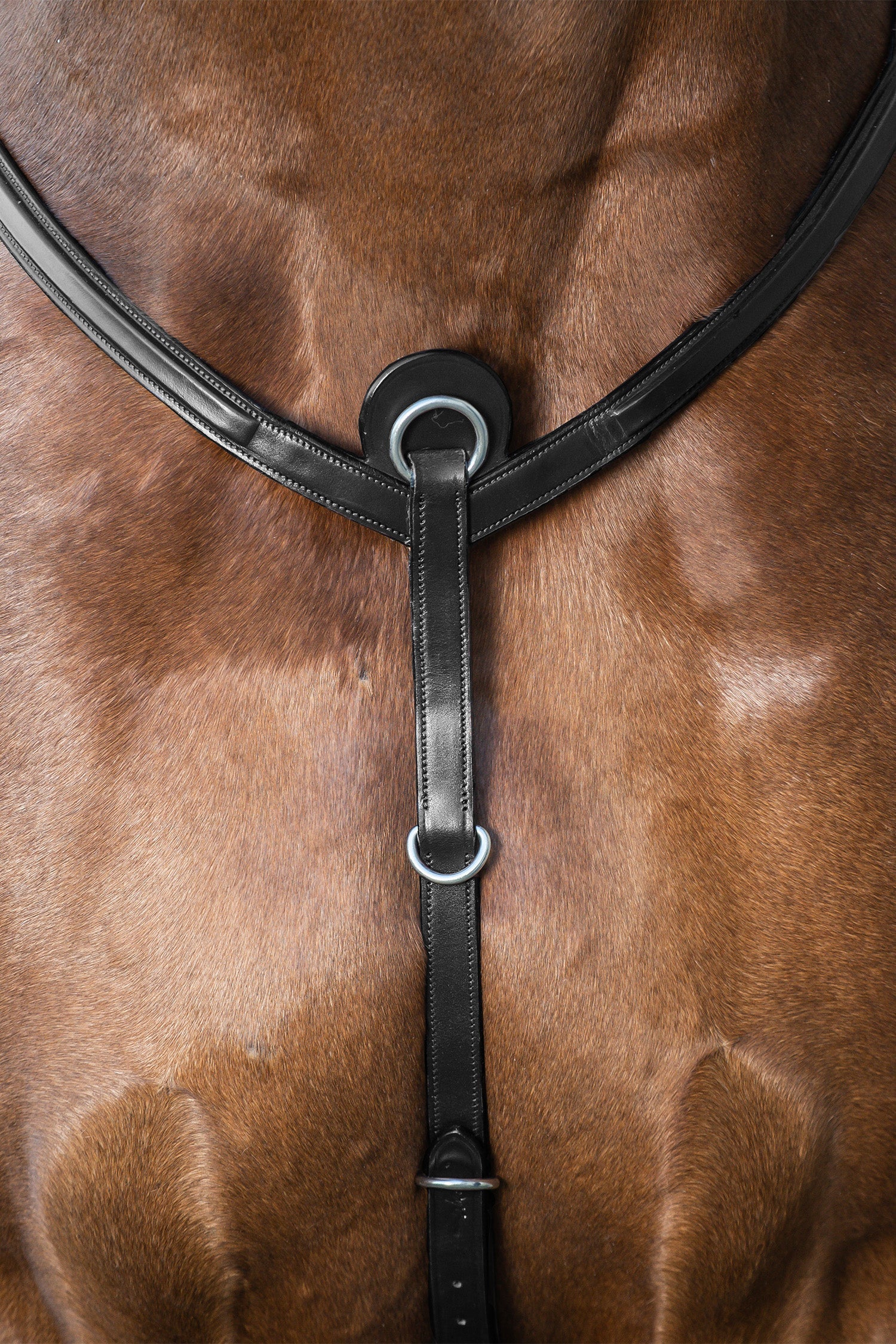 Eine stilvolle und schlichte Brustplatte von Dyon. Die Brustplatte wird vorne am Sattel befestigt und verfügt über einen elastischen Teil, der Passform und Bewegungsfreiheit verbessert. Das Leder ist Dyons Premiumleder aus Spanien und die Brustplatte ist mit schönen Details wie Erhöhungen und Nähten versehen, die mit silbernen Schnallen abgeschlossen werden.