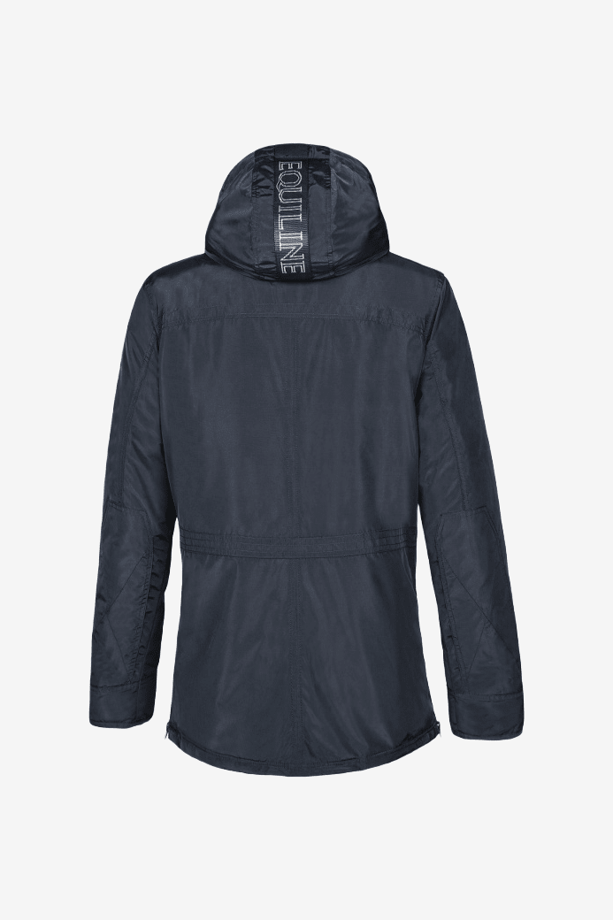 Vattenavvisande yttermaterial, tvåvägsdragkedja framtill samt två korta dragkedjor i sidorna för bättre rörelsefrihet vid ridning.