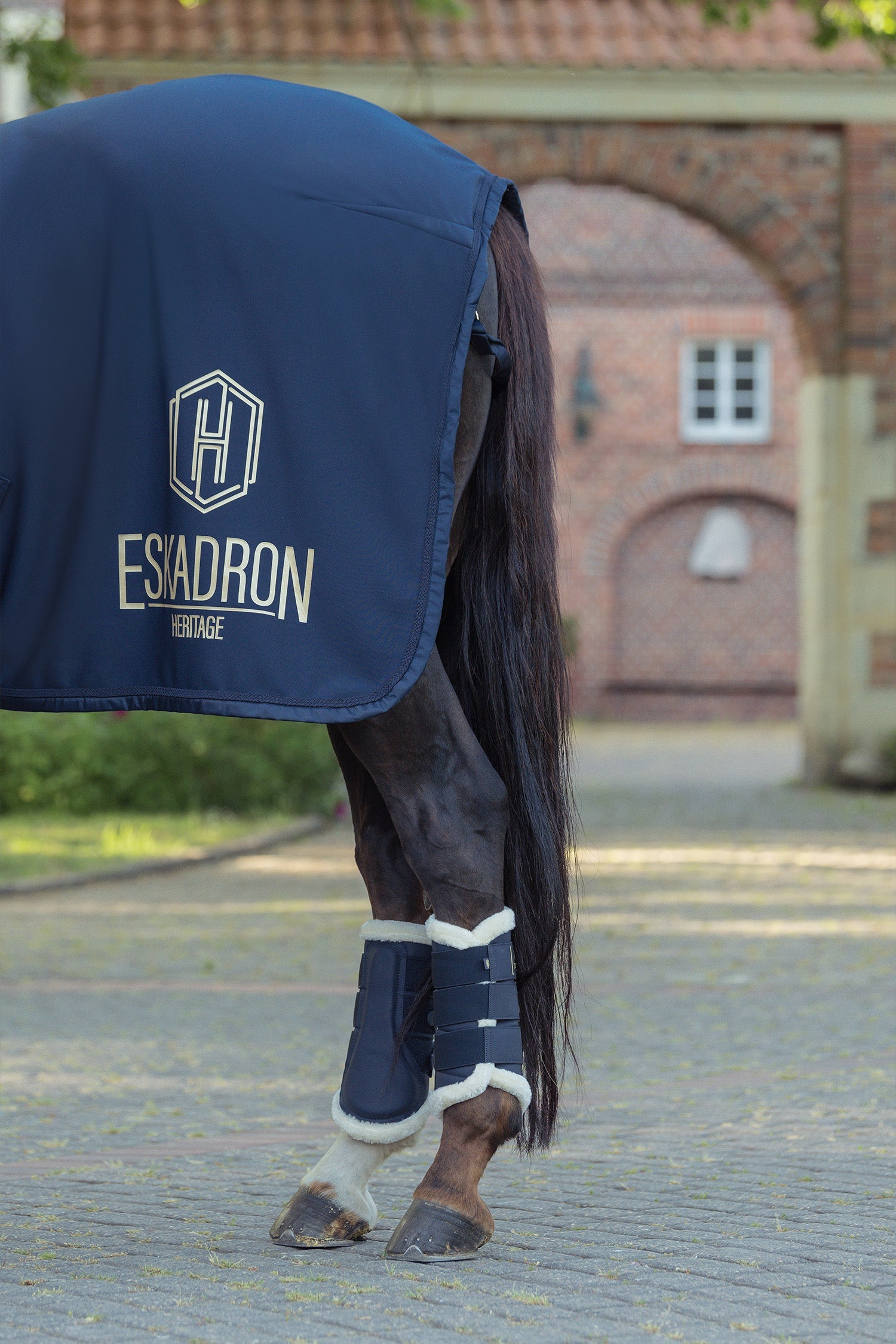 Der weiche Kunstfellrand an den Kanten reduziert das Risiko von Scheuerstellen und macht die Gamaschen besonders angenehm, auch für empfindliche Pferde. Elastische Klettverschlüsse ermöglichen ein einfaches An- und Ausziehen und sorgen für einen sicheren, individuell anpassbaren Sitz. Heritage-Emblem und kleine Flaggenetikett setzen einen eleganten Akzent.