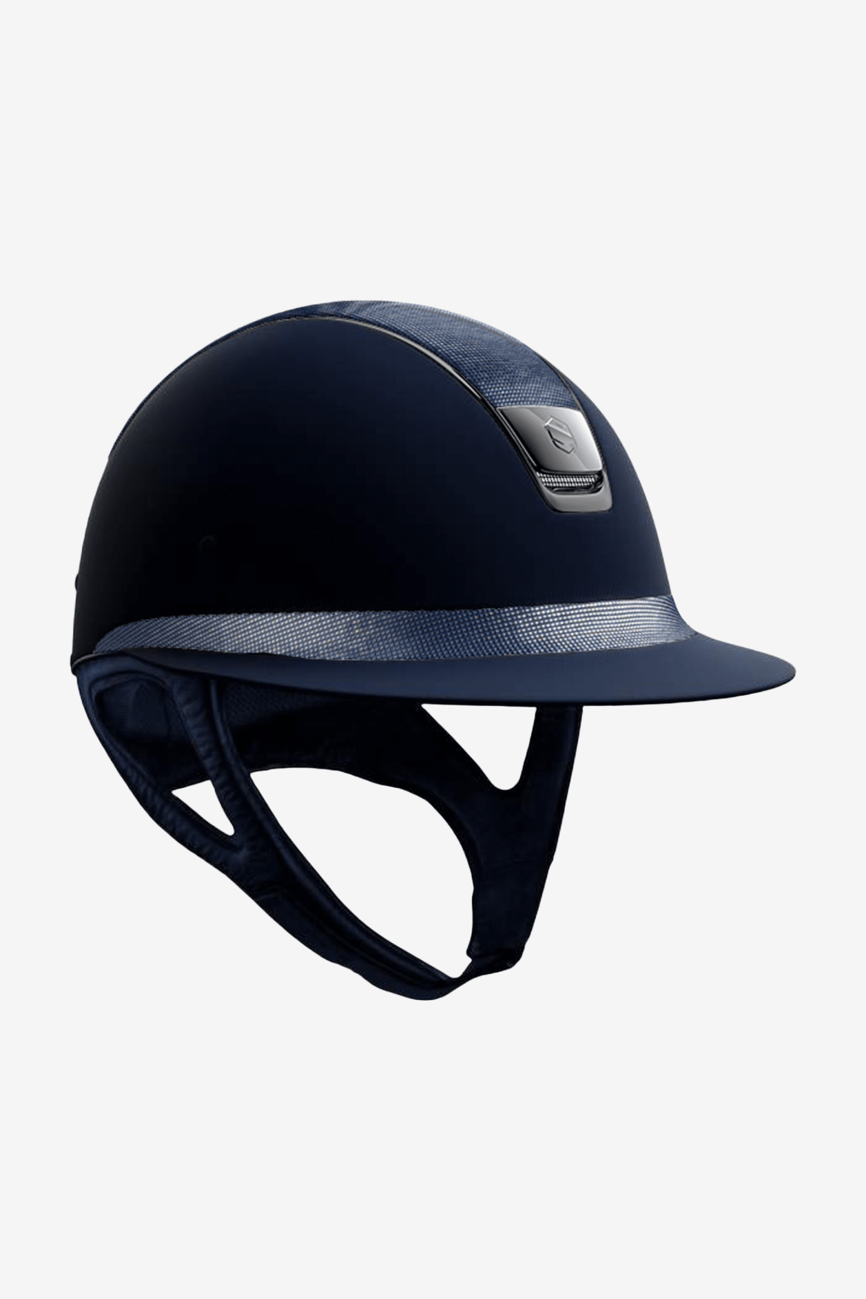 Denna hjälmen är utrustad med DRESSAGE STRAP för att få plats med håruppsättningarna. Hjälmens nackskydd är uppflyttat 2,5cm.