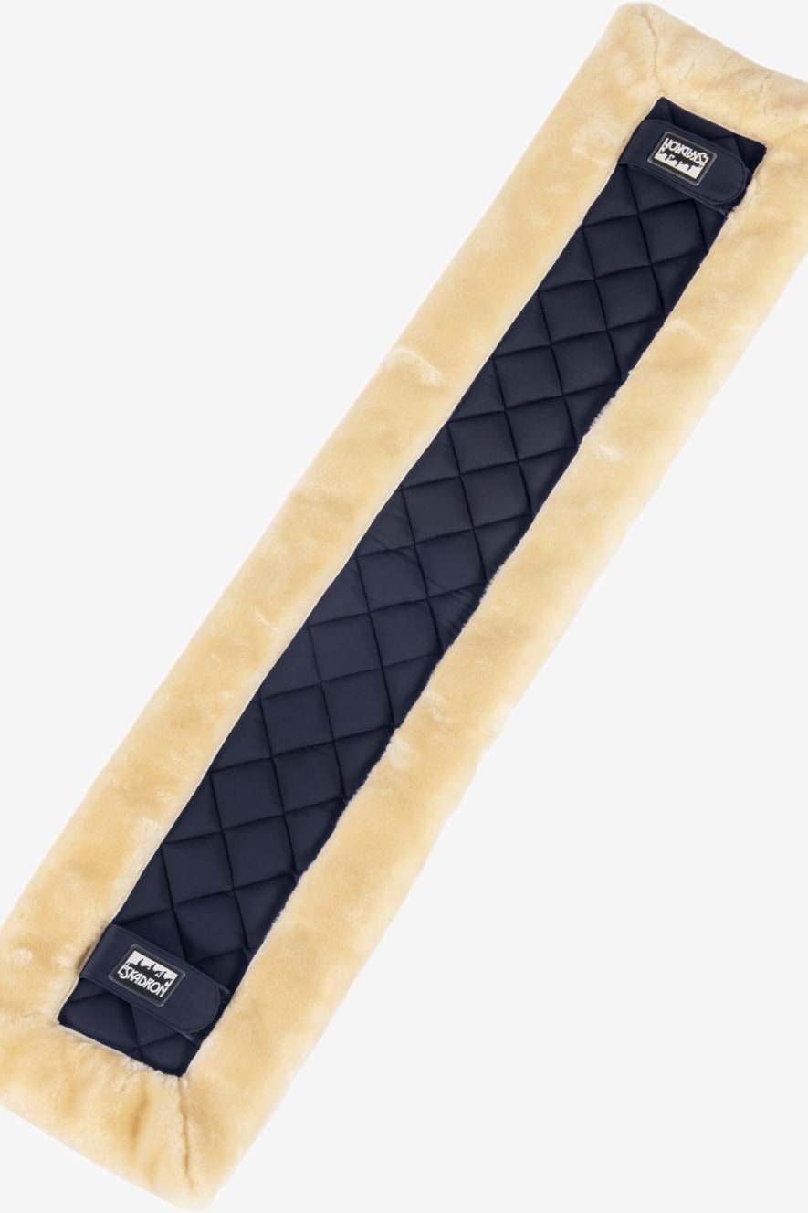 Praktische Unterlage zum Longieren von Eskadron, mit Softshell-Außenmaterial und Kunstfell für eine weiche Innenseite. Lässt sich einfach mit Klettverschlüssen am Longiergurt befestigen.
