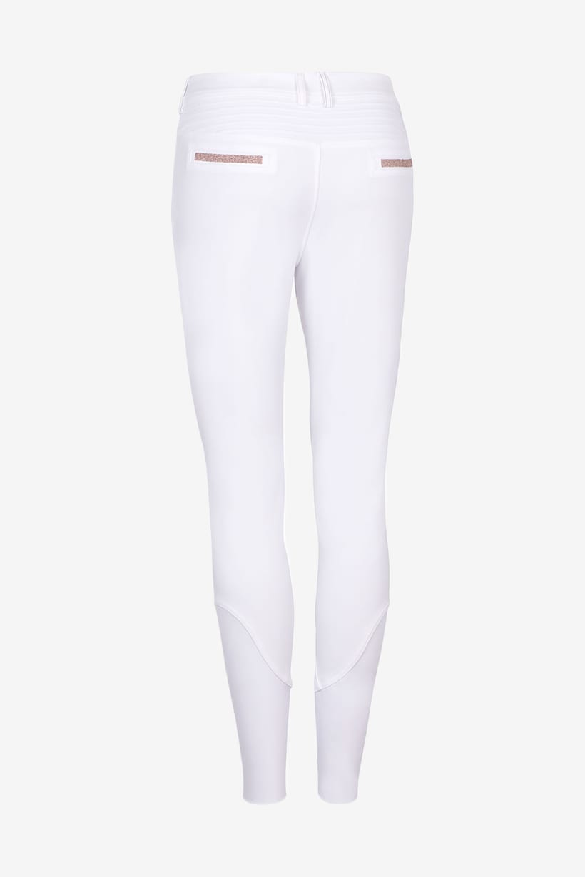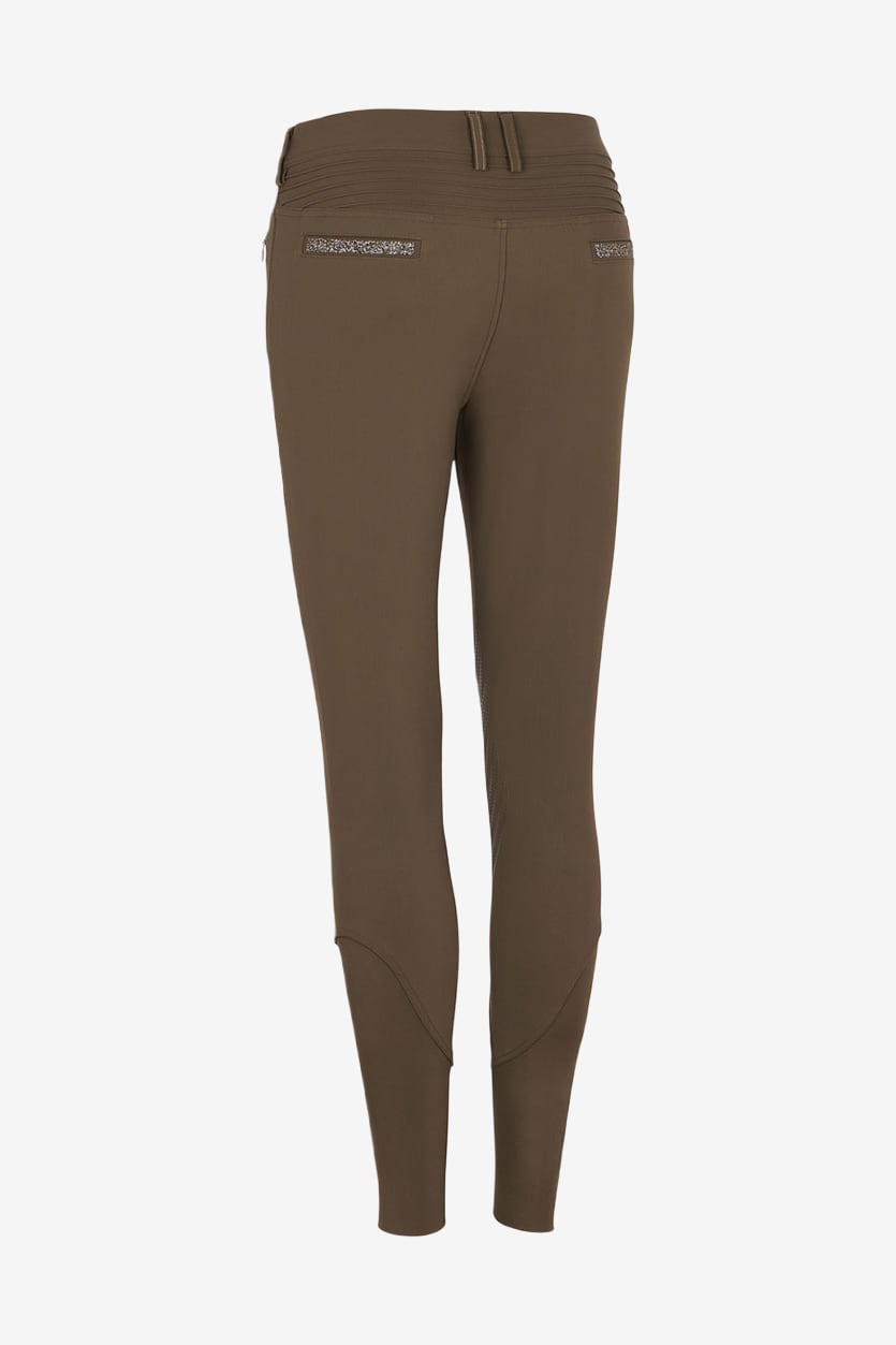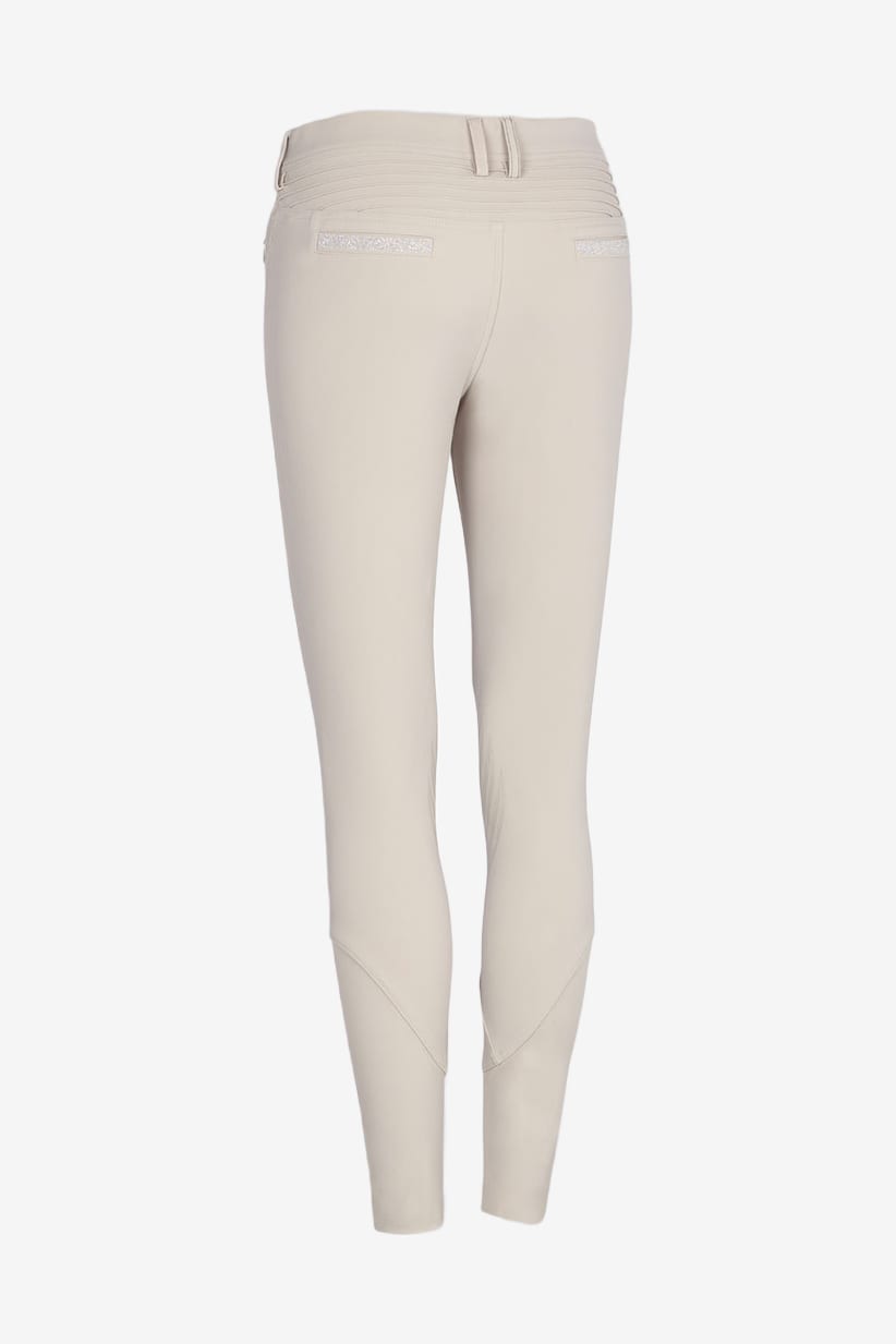 Das maßgeschneiderte Design mit der plissierten Konstruktion im Lendenbereich sorgt für eine perfekte Passform, während das strapazierfähige Material eine ausgezeichnete Qualität gewährleistet. Die Adele Reithose fühlt sich wie eine zweite Haut an, und das elastische Material ist sehr atmungsaktiv und bietet zudem einen gewissen Windschutz.