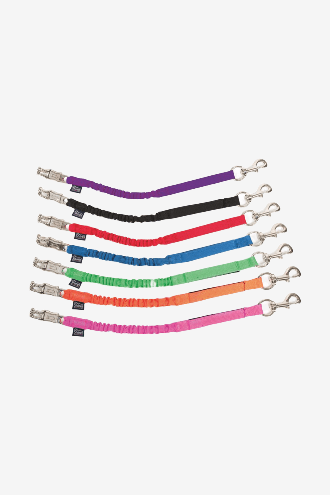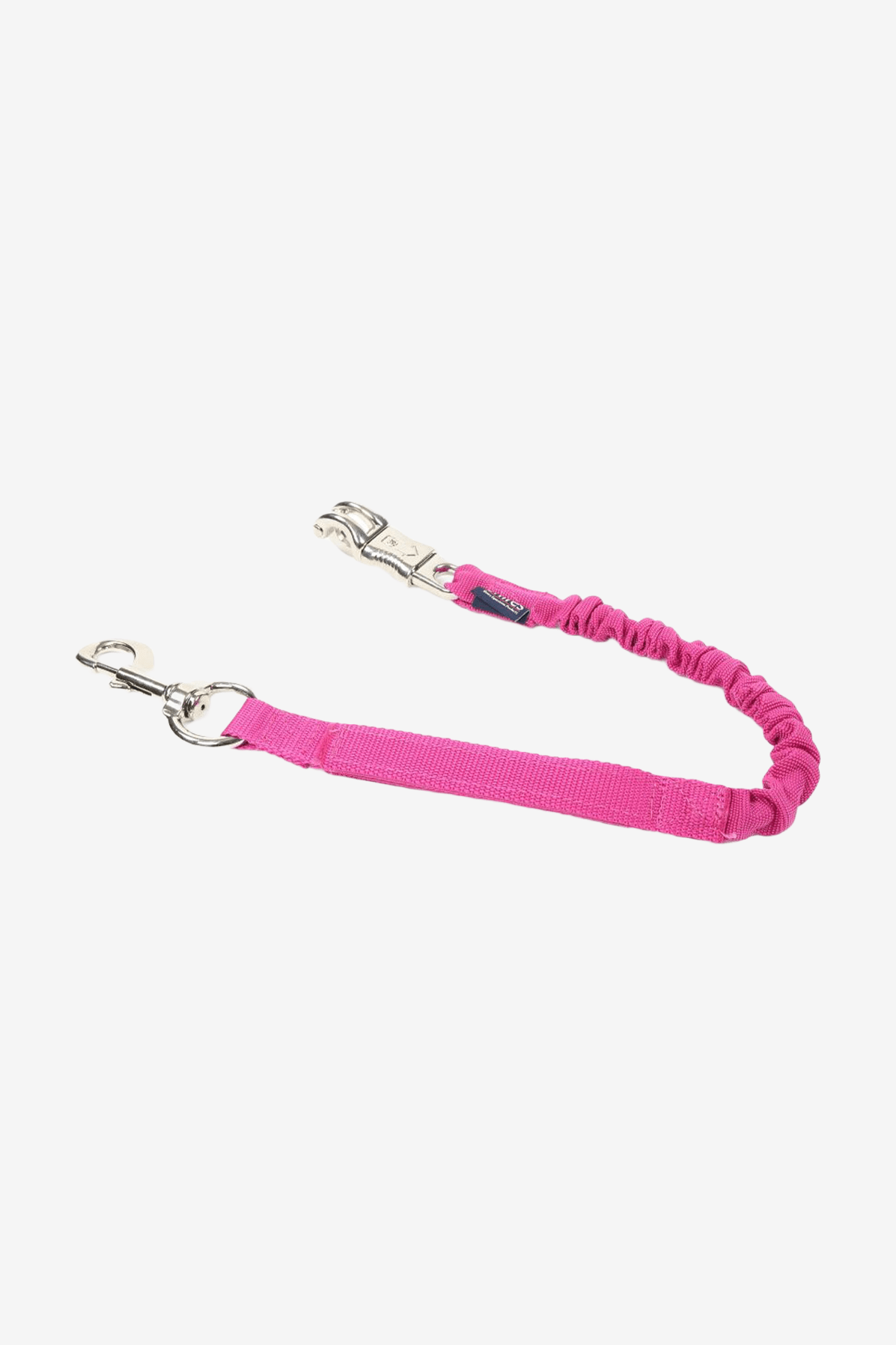Transport-Führstrick mit stoffüberzogenem Stretch. Öffnungsbereich mit Klettverschluss. An einem Ende Schnelllösekarabiner, am anderen Ende Panikhaken.