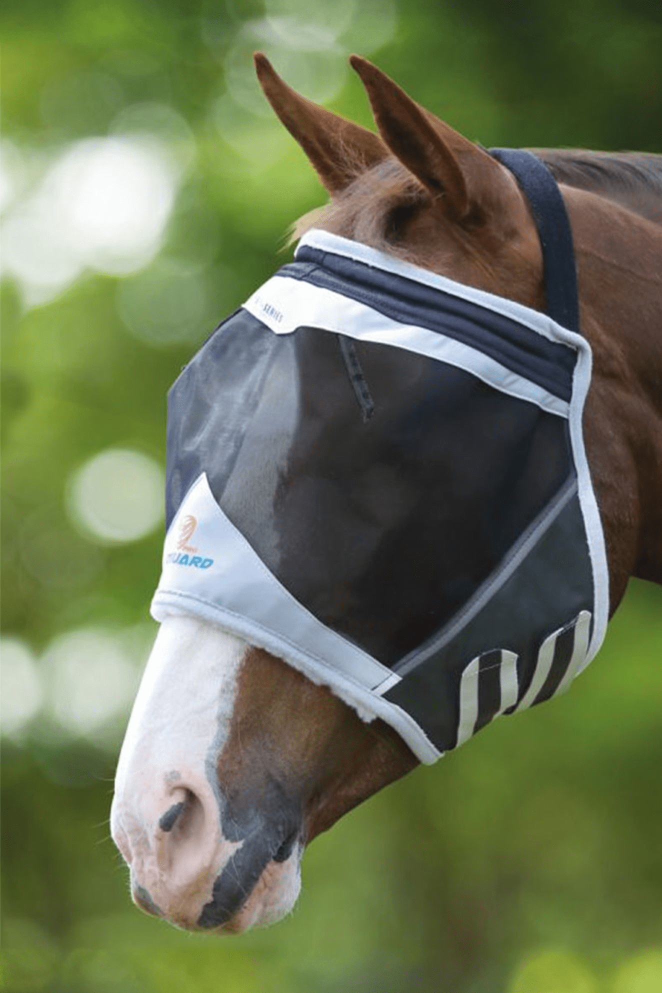 Populära Shires flughuvan utan skydd för öronen. Perfekt passform via elastisk nacke och knäppen runt ganascherna. Vadderad insida minskar risken för skav. Vecken vid ögonen frigör så att materialet inte kommer i kontakt med hästens ögon. 70% UV-skydd.