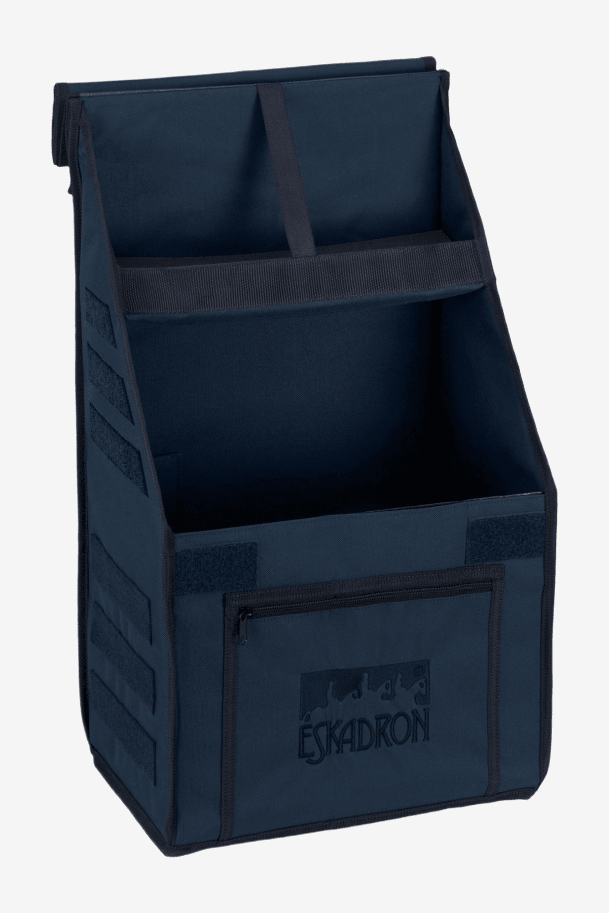 Praktische und geräumige Boxentasche von Eskadron. Die Tasche bietet viel Stauraum und zahlreiche Taschen. Sie ist vollständig mit einer Kunststoffplatte stabilisiert, um die Befestigung im Stall oder auf Reisen zu gewährleisten.