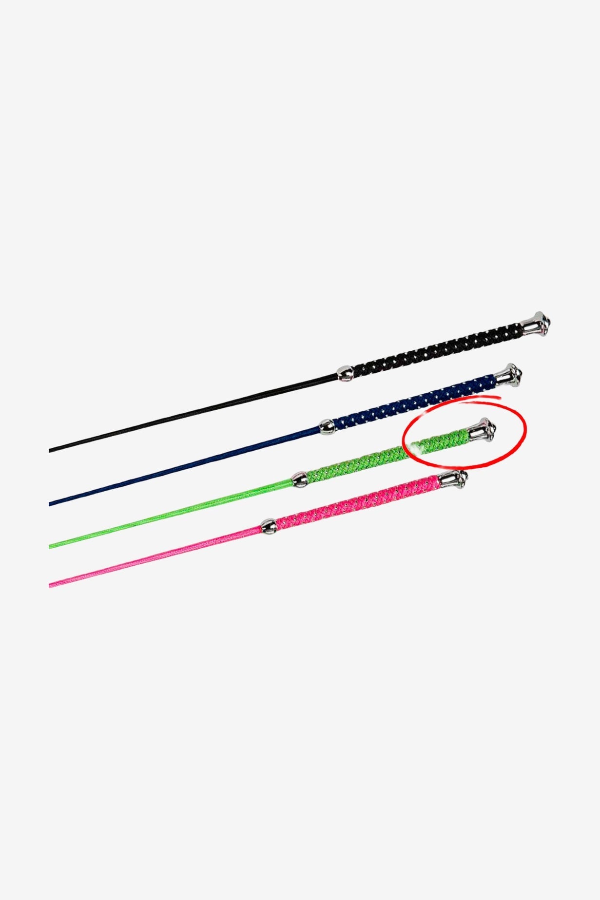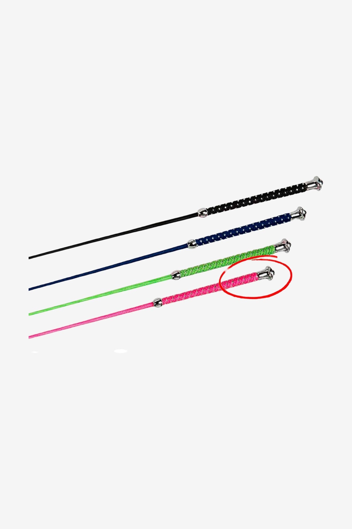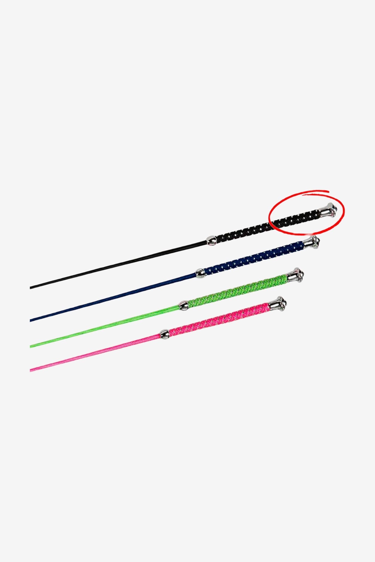 Nylon-ummantelter Glasfaserkern mit Griff aus Nylon/Silber und silbernem Knauf.