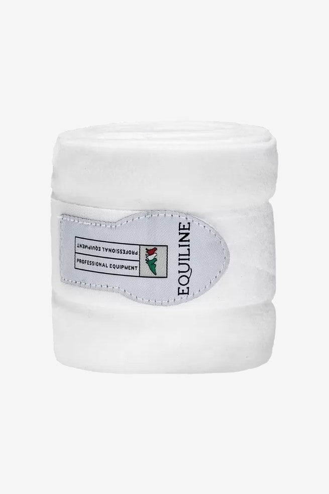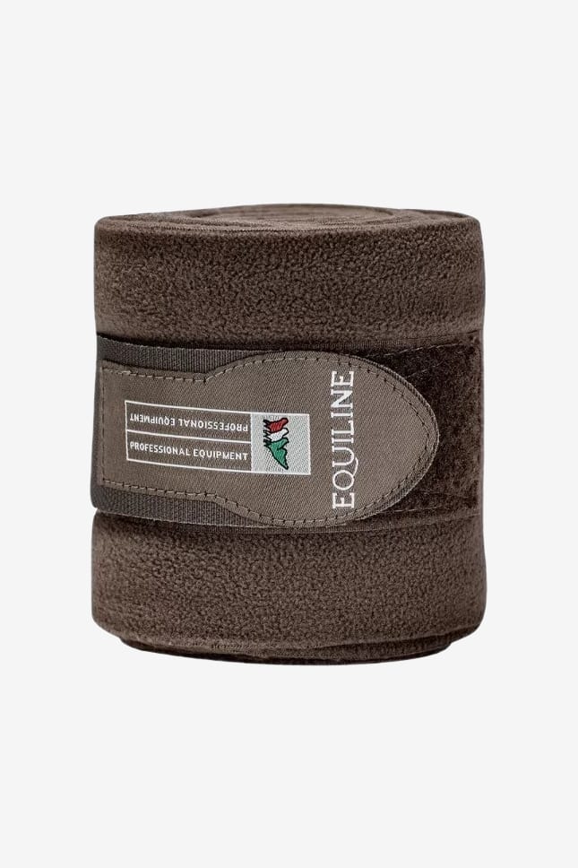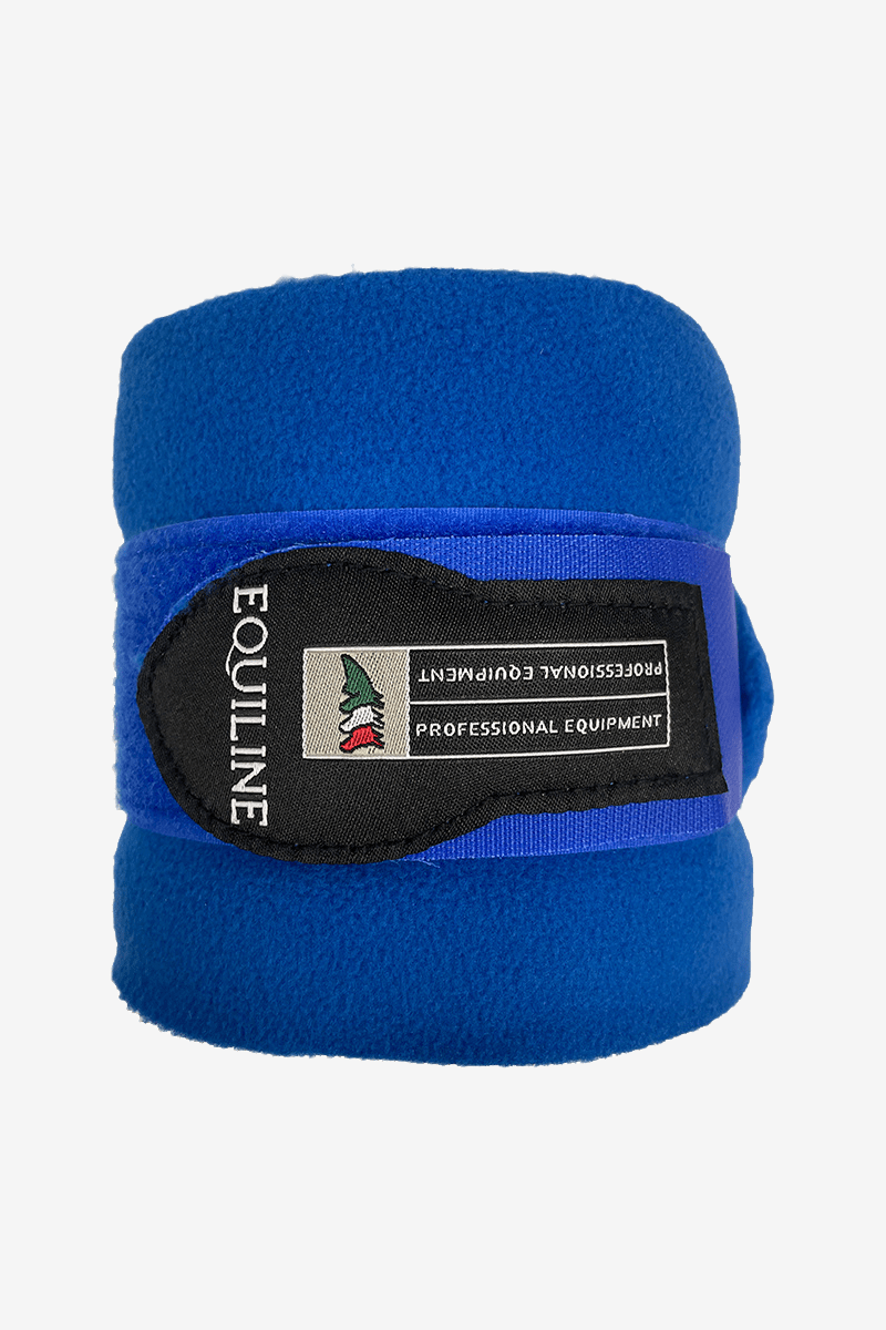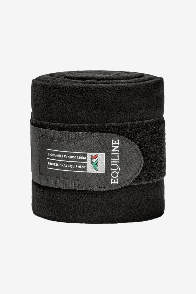 Fleecebandager i polarfleece. Kan bruges med eller uden bandageunderlag under. Kraftig velcrolukning i enden med Equiline-logo.
