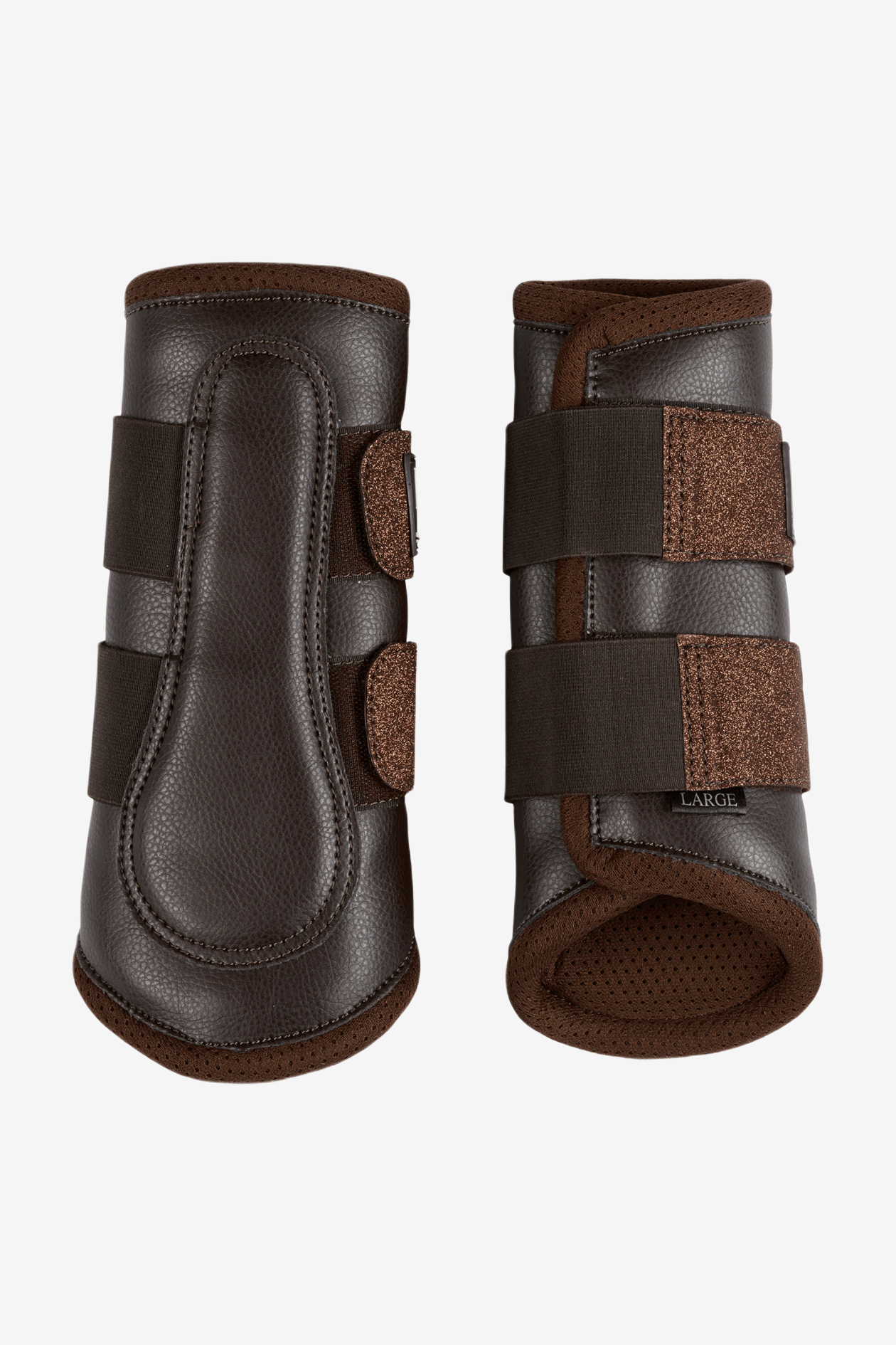 Gamacher i kunstlæder med neopren indvendigt. Gamacherne lukkes med elastisk velcrolukning.