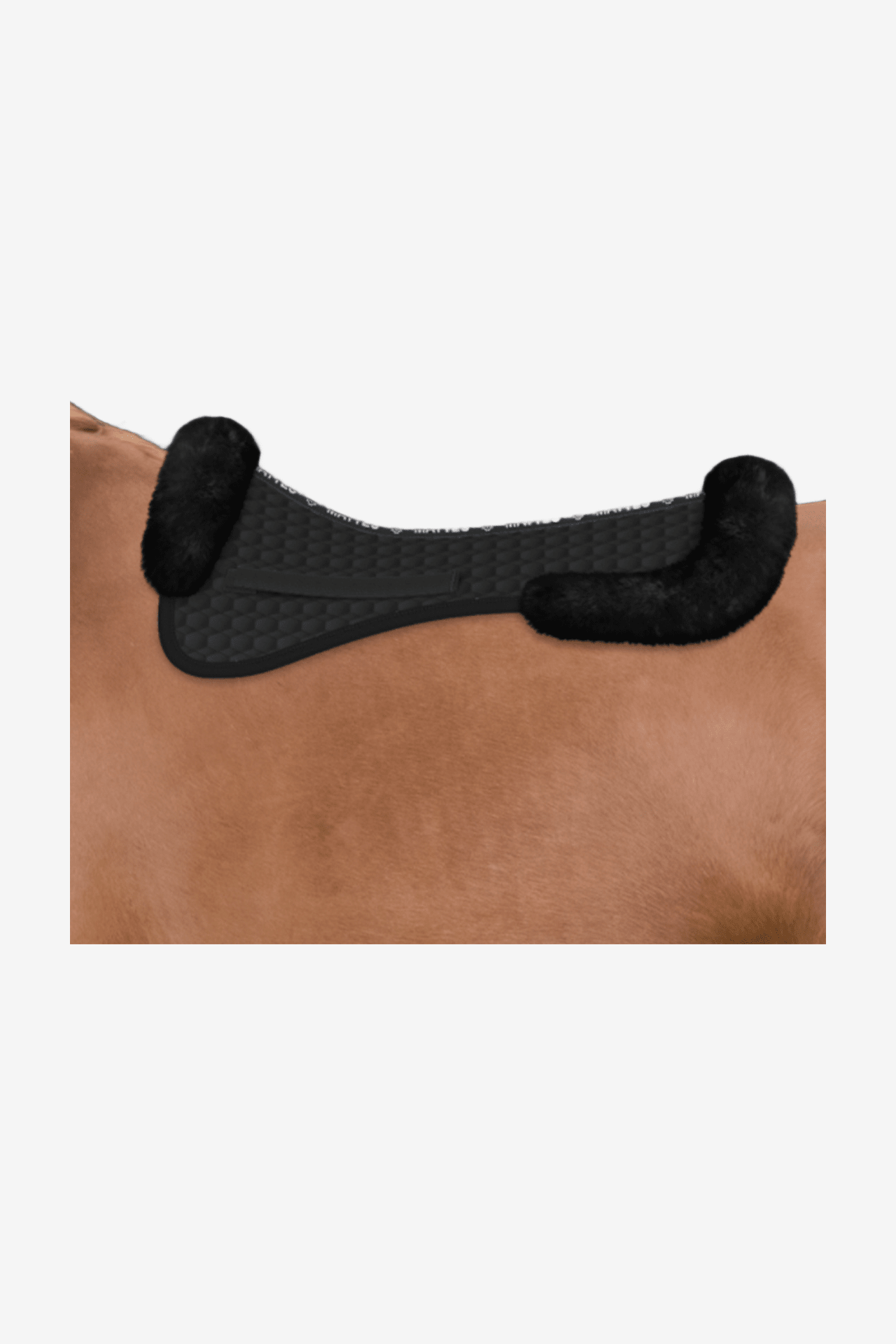 Fårskinnspad med fantastisk passform. Extra tjock och fluffig av äkta fårskinn, med uppvikt kant och bred ryggkanal vilket eliminerar eventuella problem med tryck i ryggradsområdet. Fårskinnet verkar stötupptagande och mjukt för den känsliga ryggen, även bra för att fylla ut under sadeln om den är lite vid för hästen.