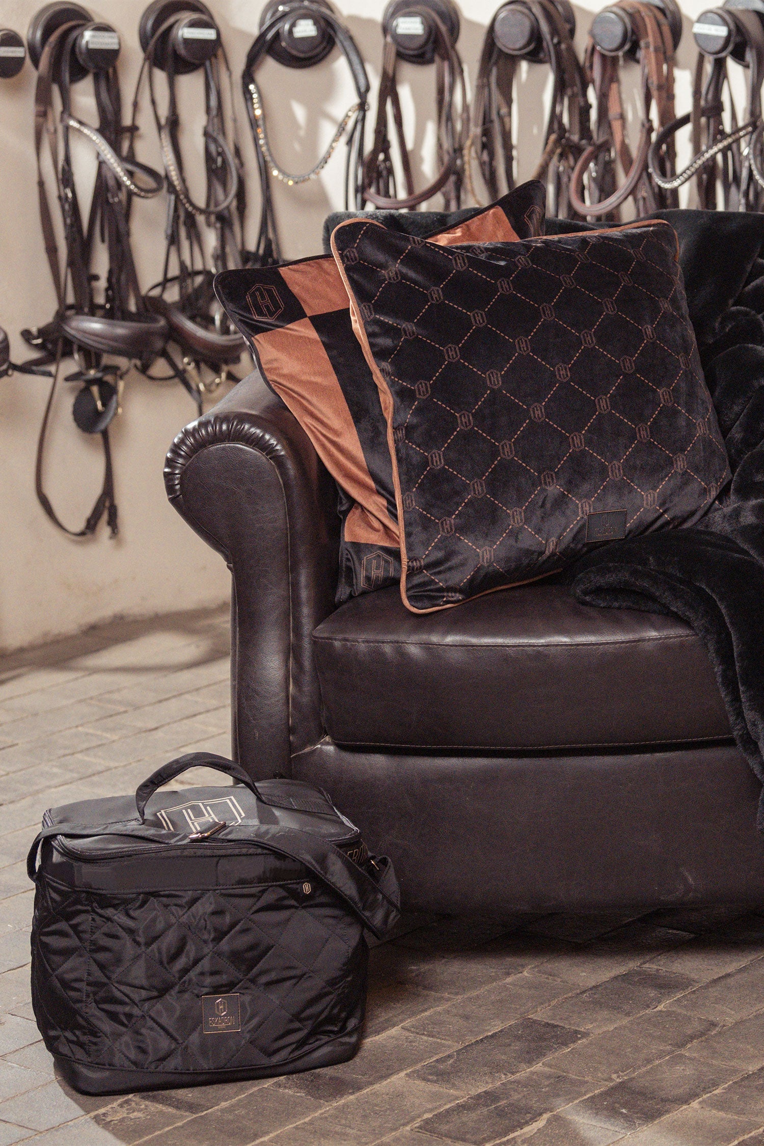 Strigletasken lukkes med lynlås, der forhindrer, at børster eller tilbehør falder ud, eller at snavs kommer ind. Justerbar skulderrem og et praktisk håndtag, der gør tasken nem at bære. Superfin taske, der er lige så fin til hverdagsbrug som til stalden.