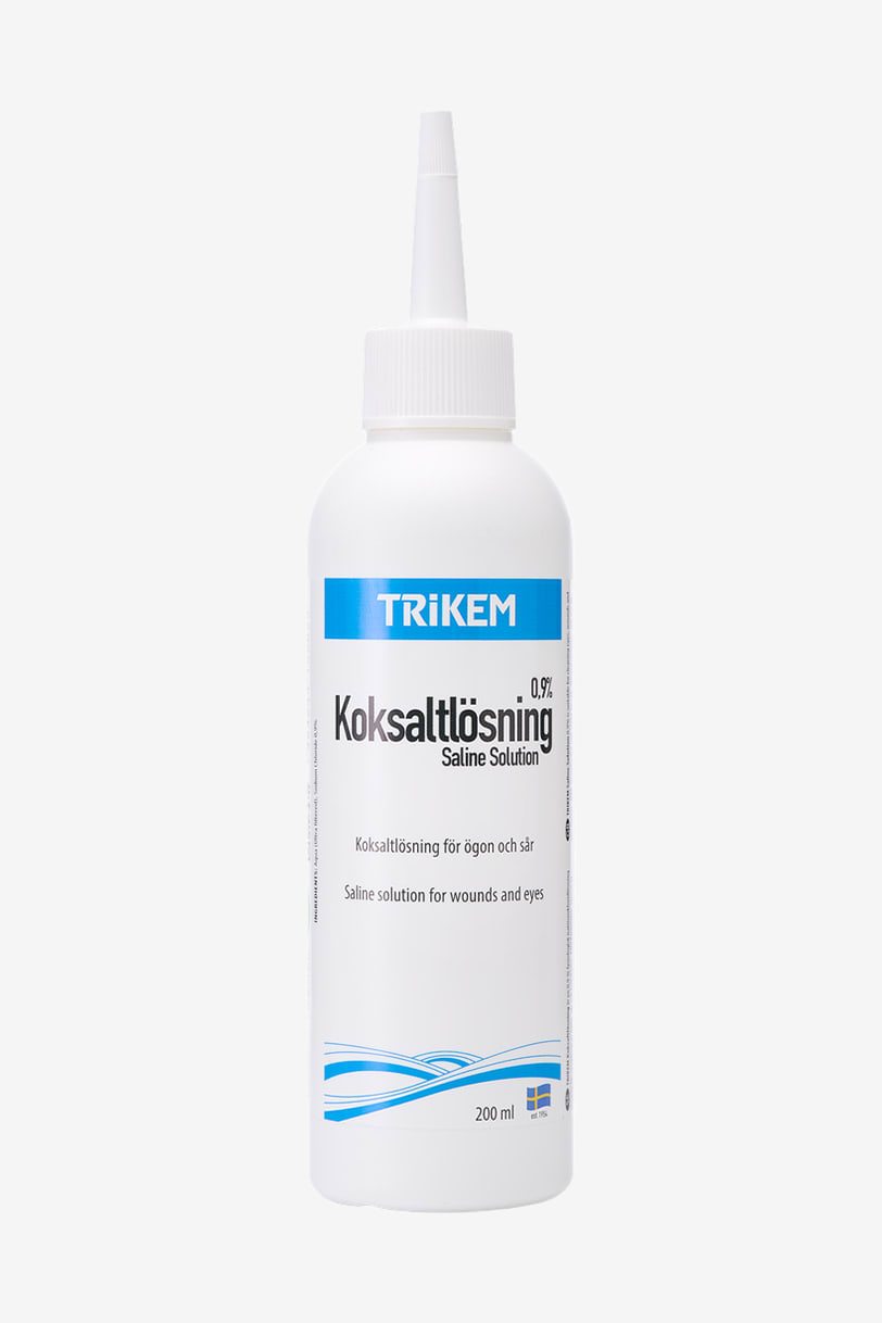 Ved øjenrengøring – skyl øjet med saltvandsopløsning.