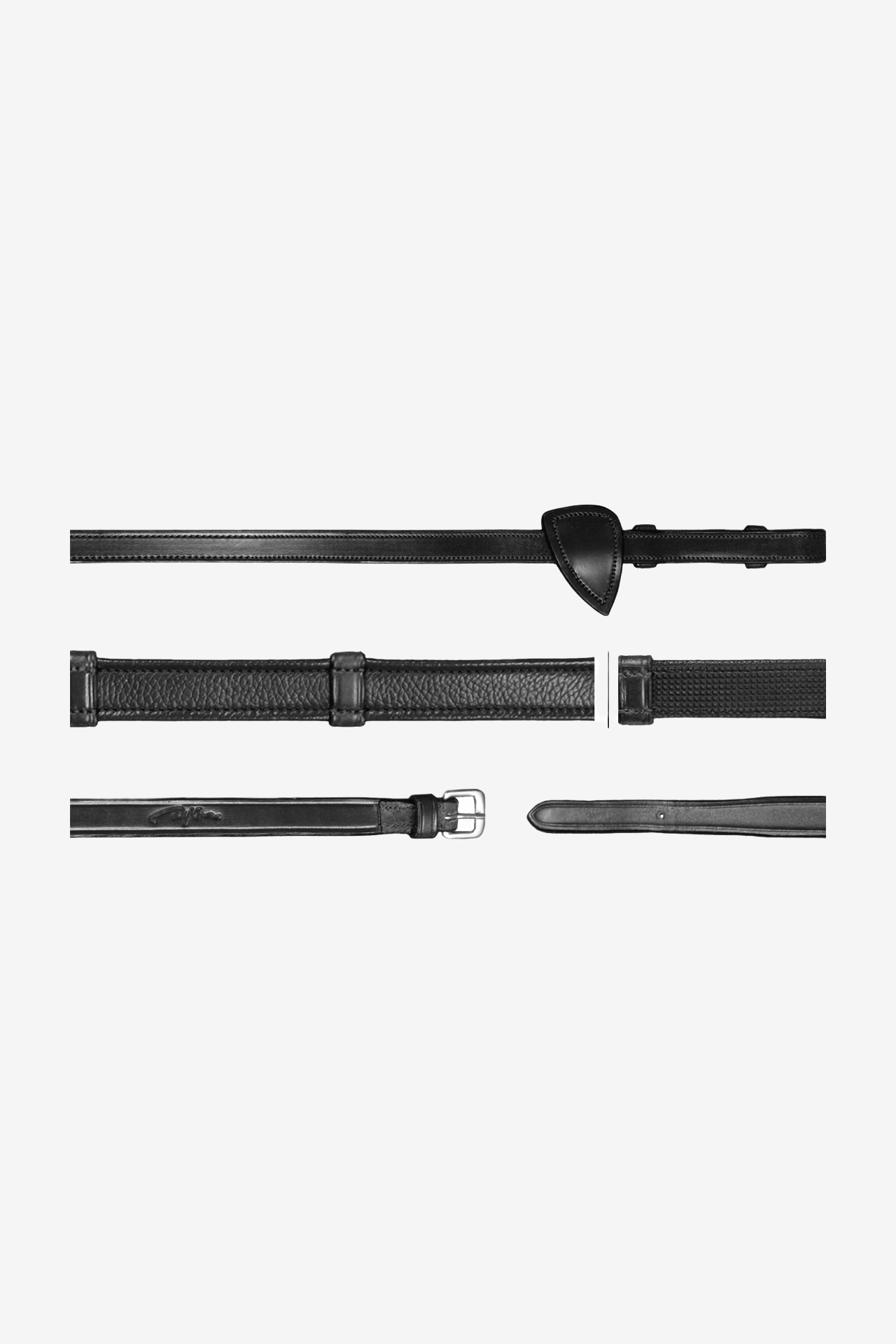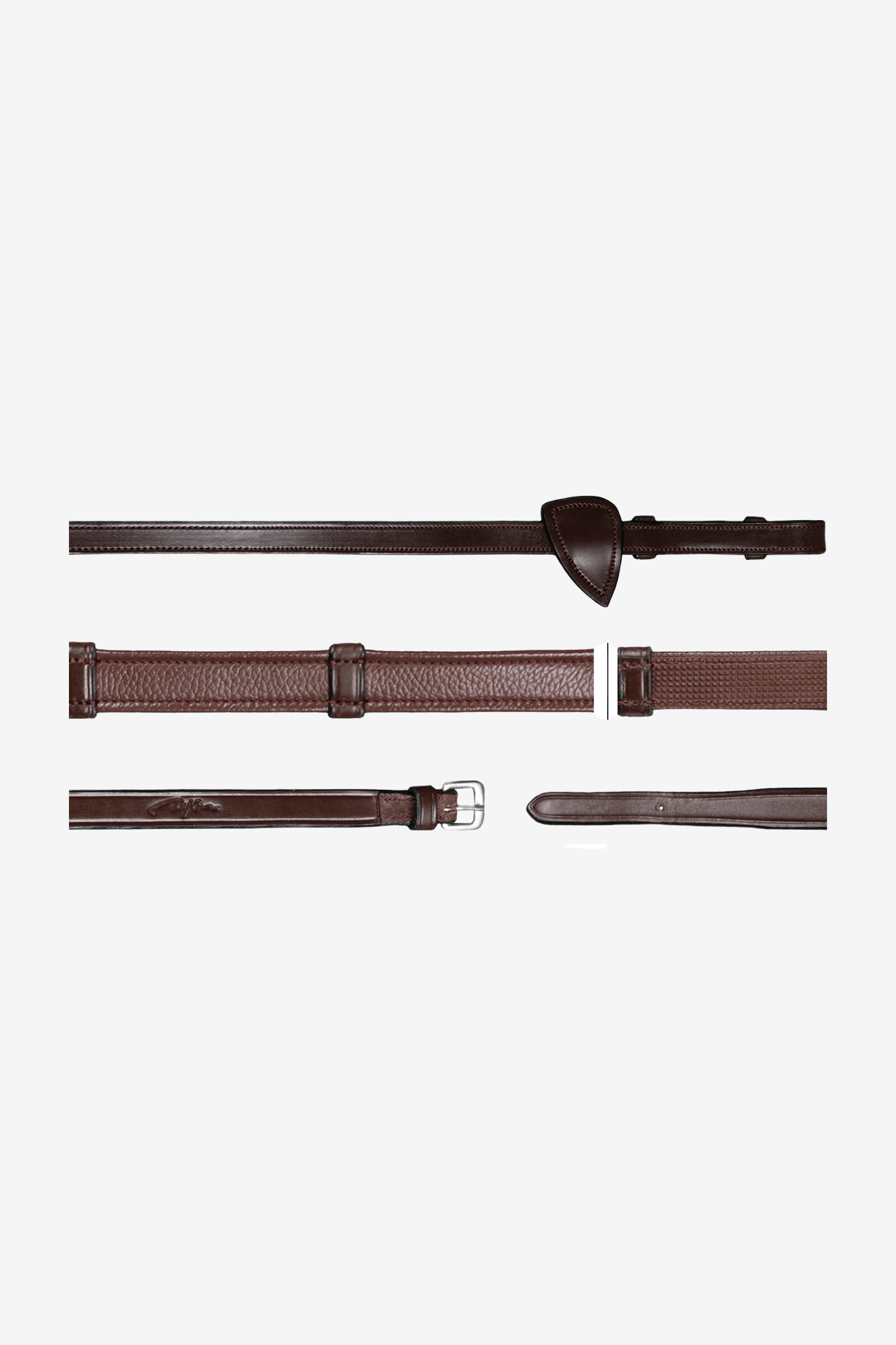 Dy’on New English Collection 5/8” huntertøjler med 7 læderstop er det perfekte valg for ryttere, der søger stilfulde og funktionelle tøjler med ekstra sikkerhed og greb. Fremstillet i europæisk premiumlæder og udstyret med 7 jævnt placerede stop, giver disse tøjler en tydelig og stabil kontakt mellem hest og rytter.