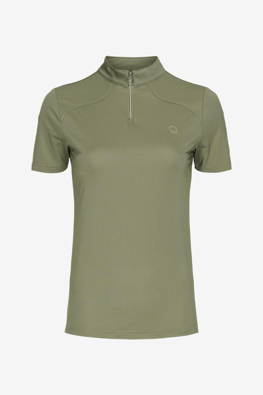 Sportig och klassisk t-shirt från Equipage. T-shirten har en halv dragkedja framtill och är tillverkad av mjuk och stretchig polyester. Tyget har små hål för oöverträffad ventilation, vilket gör den perfekt för varma sommardagar i sadeln.