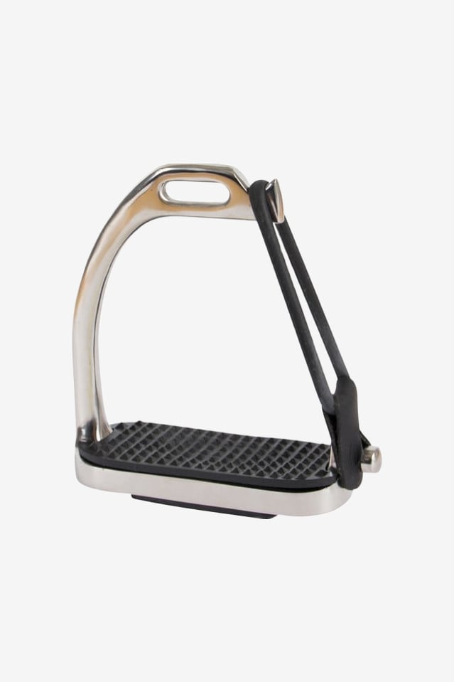 Sikkerhedsstigbøjle i rustfrit stål med gummibånd.
