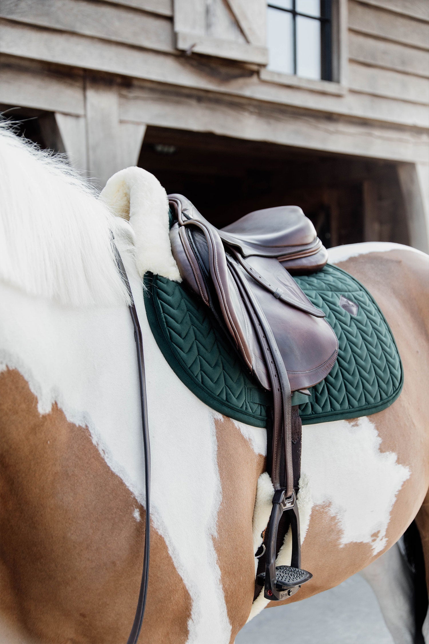 Et helt vidunderligt sadelunderlag fra Kentucky, utroligt blødt takket være dets veganske fåreskind med velour på ydersiden. Fremstillet udelukkende af veganske materialer. Vatteringen giver en fremragende dæmpning over ryggen. Særligt velegnet til heste med følsom hud.