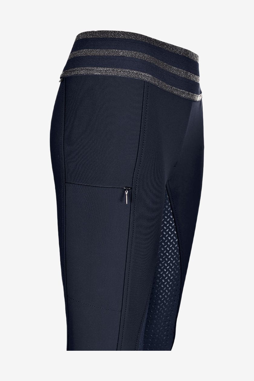 Helskodede ridebukser i mørkegrå fra Pikeur. Ridebukser med høj talje og elastisk taljebånd i et blødt og funktionelt stof. Ridebukserne har silikonegreb og er en smal model med ekstra benlængde. Bukserne er detaljeret med en lomme til mobiltelefon, der lukkes med lynlås, samt Pikeur Strass på højre lår.