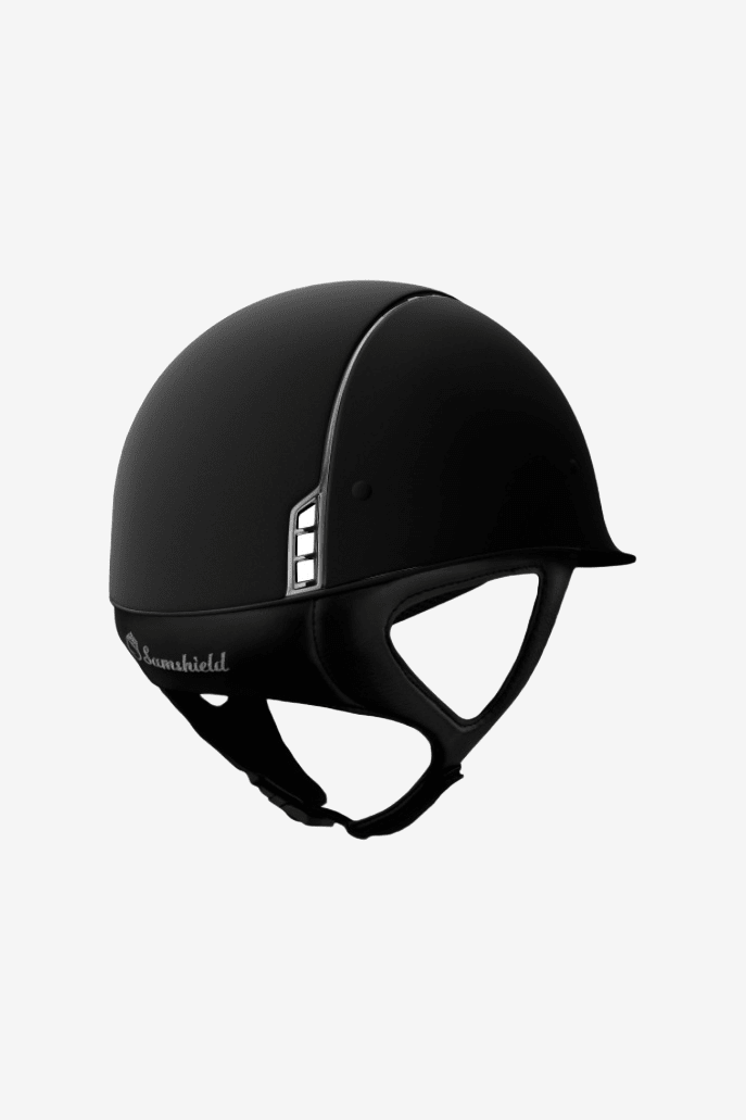 Denna hjälmen är utrustad med DRESSAGE STRAP för att få plats med håruppsättningarna. Hjälmens nackskydd är uppflyttat 2,5cm.