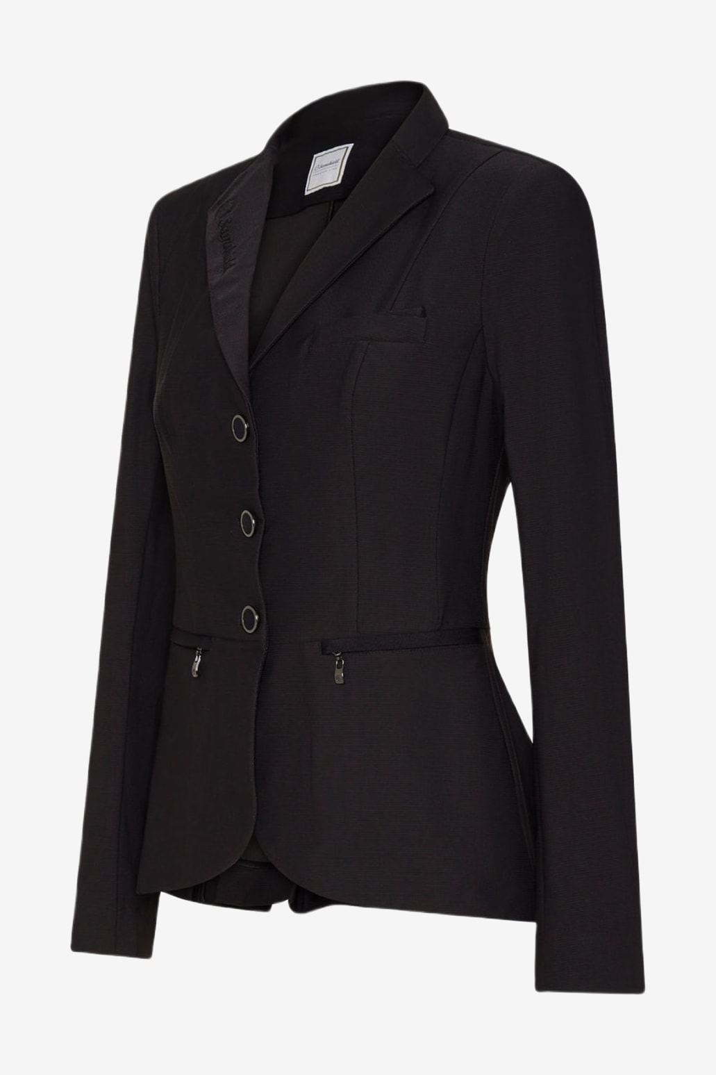 Jakken er designet til at give rytteren komfort og bevægelsesfrihed. Den figursyede model er syet lidt kortere foran og længere bagpå, hvilket giver et pænt indtryk.