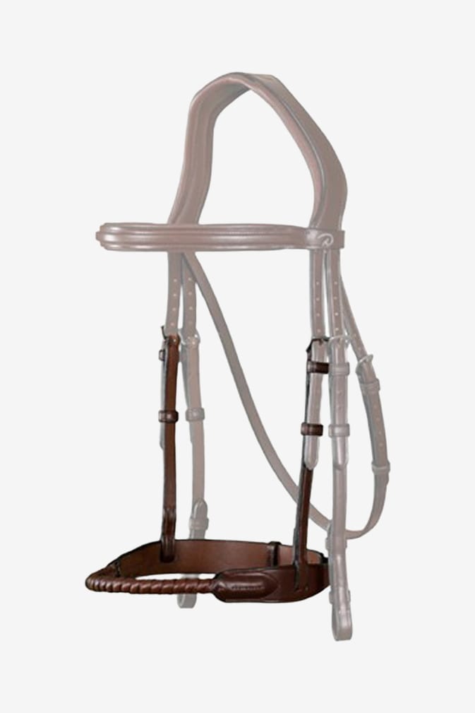 Läderklädd repnosgrimma från Dyón. Repnosgrimman är tillverkad i spanskt läder med silverspännen. Repet är tillverkat av tre vaxade rep som är ihoptvinnade.