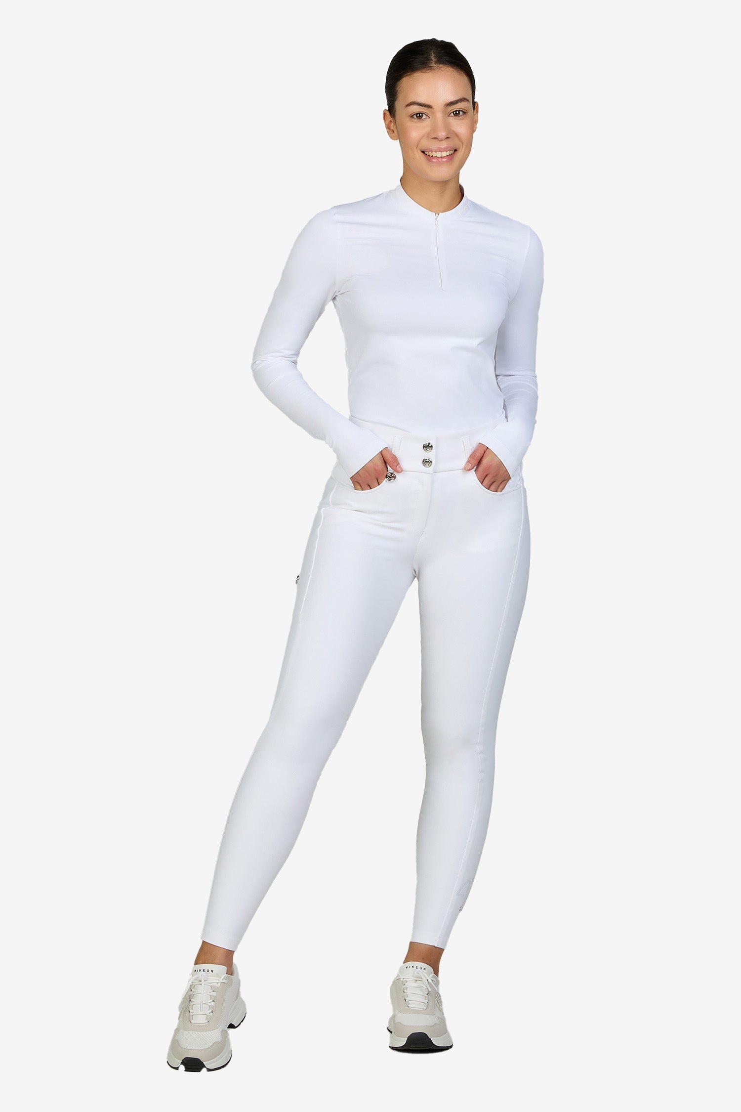 The design is completed by rounded slant pockets at the front and an integrated mobile phone pocket, making the trousers both practical and trendy. Pikeur Athleisure print at the ankle and just below the waistband gives a sporty and exclusive finish.