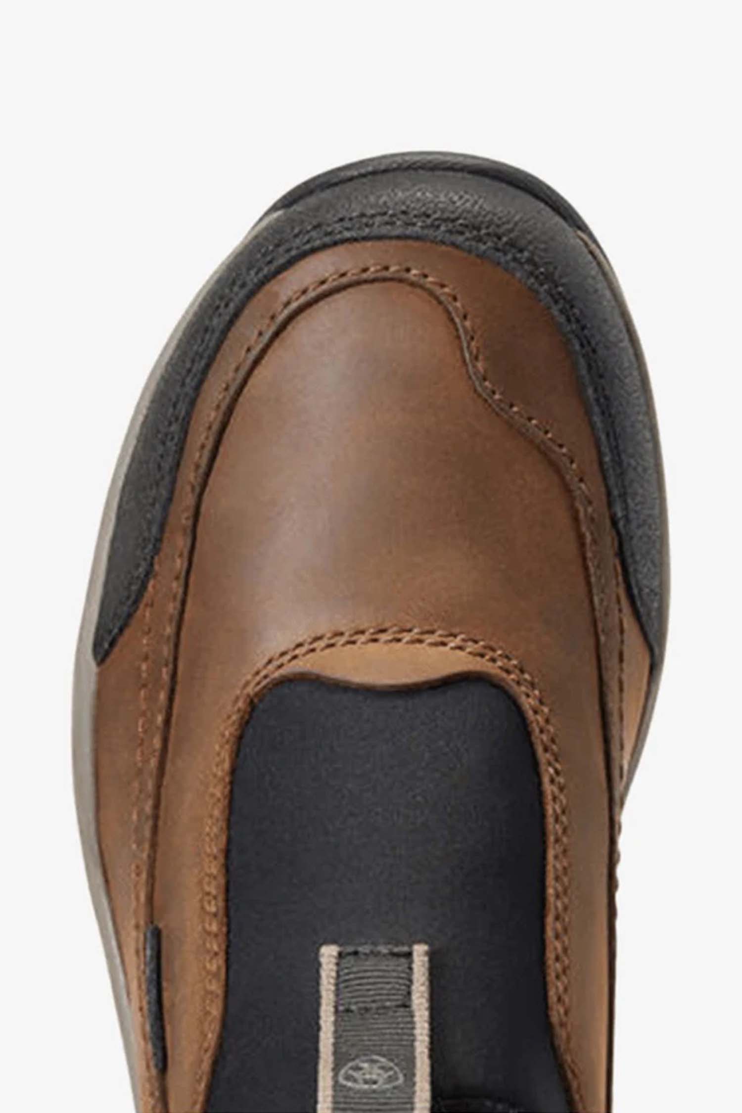 Stylish, durable waterproof shoe from Ariat. Designed for easy on and off. A robust and flexible shoe for long days in the stable, walking the dog, or just a long weekend walk. It features a shock-absorbing removable insole and Ariat's renowned EVA midsole, so you won't get tired in your back or heel even if you stand and walk all day. The shoe is also waterproof with Ariat's Waterproof PRO™ technology. Perfect for early mornings when the dew is still on the ground or wet and damp autumn days.