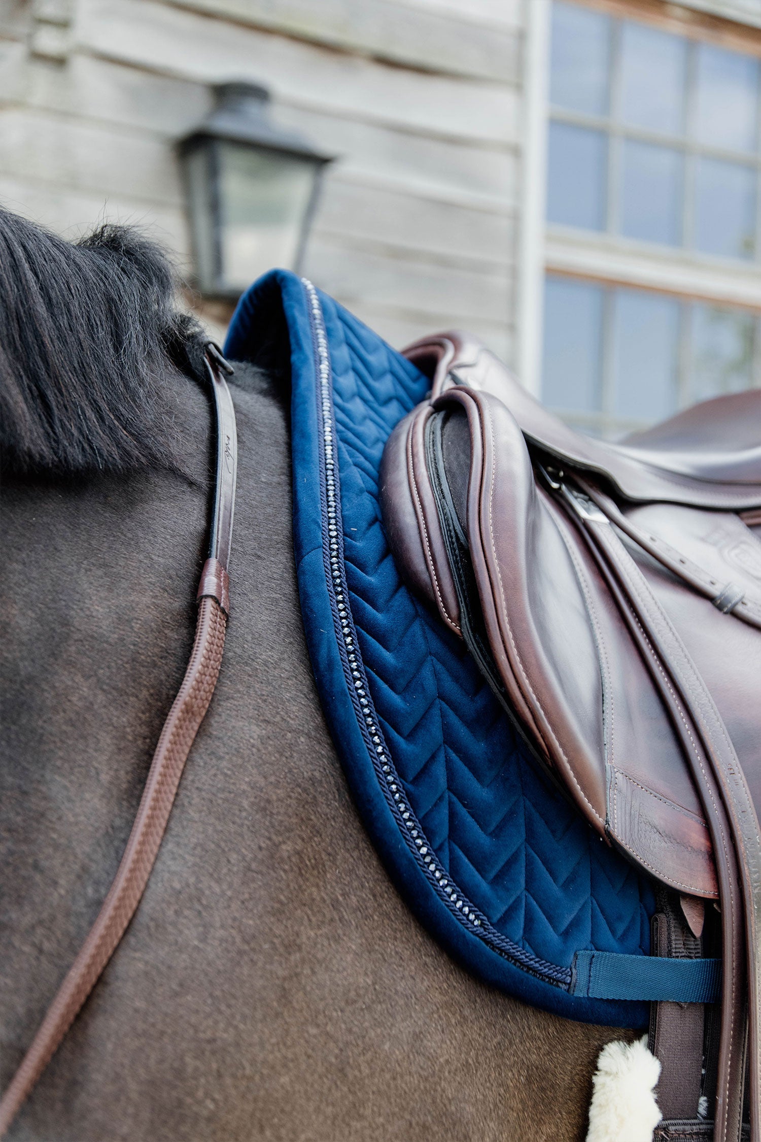 Saddle Pad Velvet Pearls från Kentucky Horsewear är följsamt formad efter hästens kropp och ger utmärkt dämpning mellan hästens rygg och sadeln samtidigt som ryggen skyddas mot friktion.