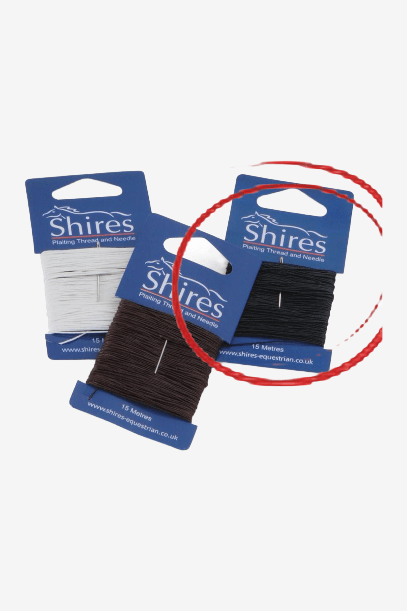 Black plaiting thread with needle.