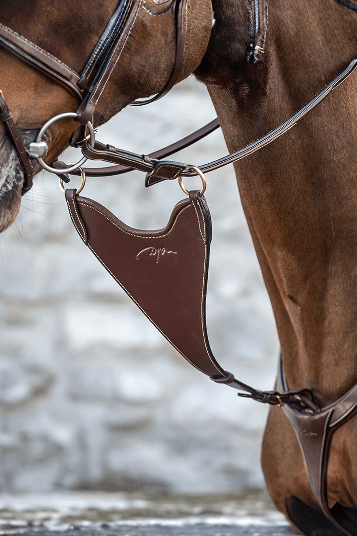 Adjustable and easily attaches to the neck strap or breastplate, helping to prevent the horse from grabbing or getting caught in the martingale.
