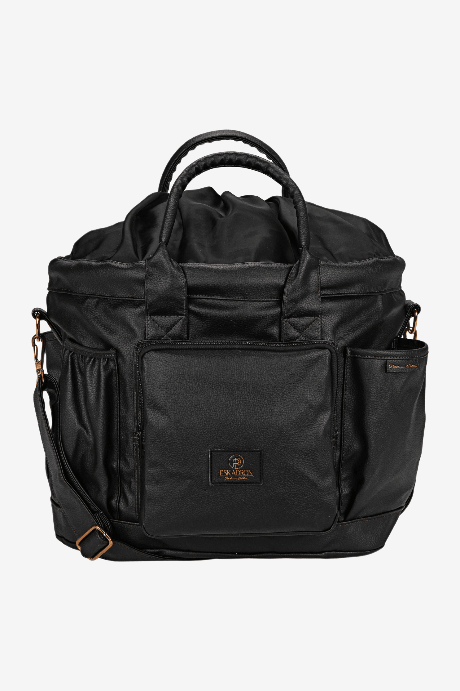A grooming bag suitable for both competition and home use. The bag is made of faux leather, making it dirt-repellent and easy to clean. It closes easily with a drawstring. Many different compartments provide good storage options both on the outside and inside the bag. Naturally matches the remaining products from the Eskadron Platinum 23 collection.