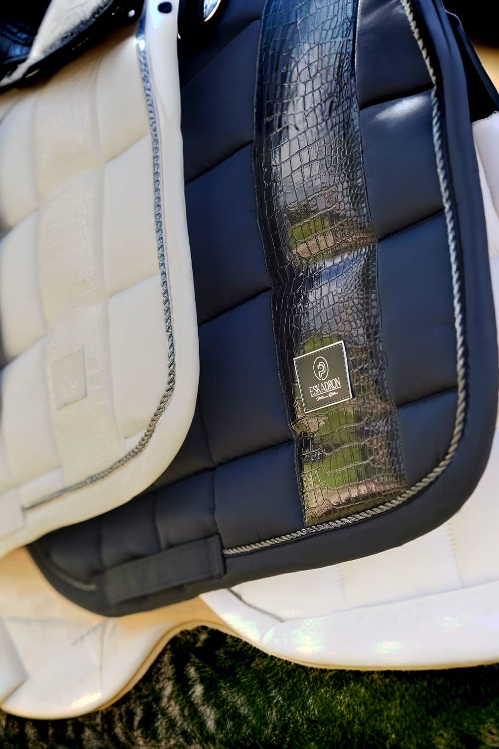 Elegant saddle pad with large squares and a glossy exterior that adds a little extra luxury to everyday life!