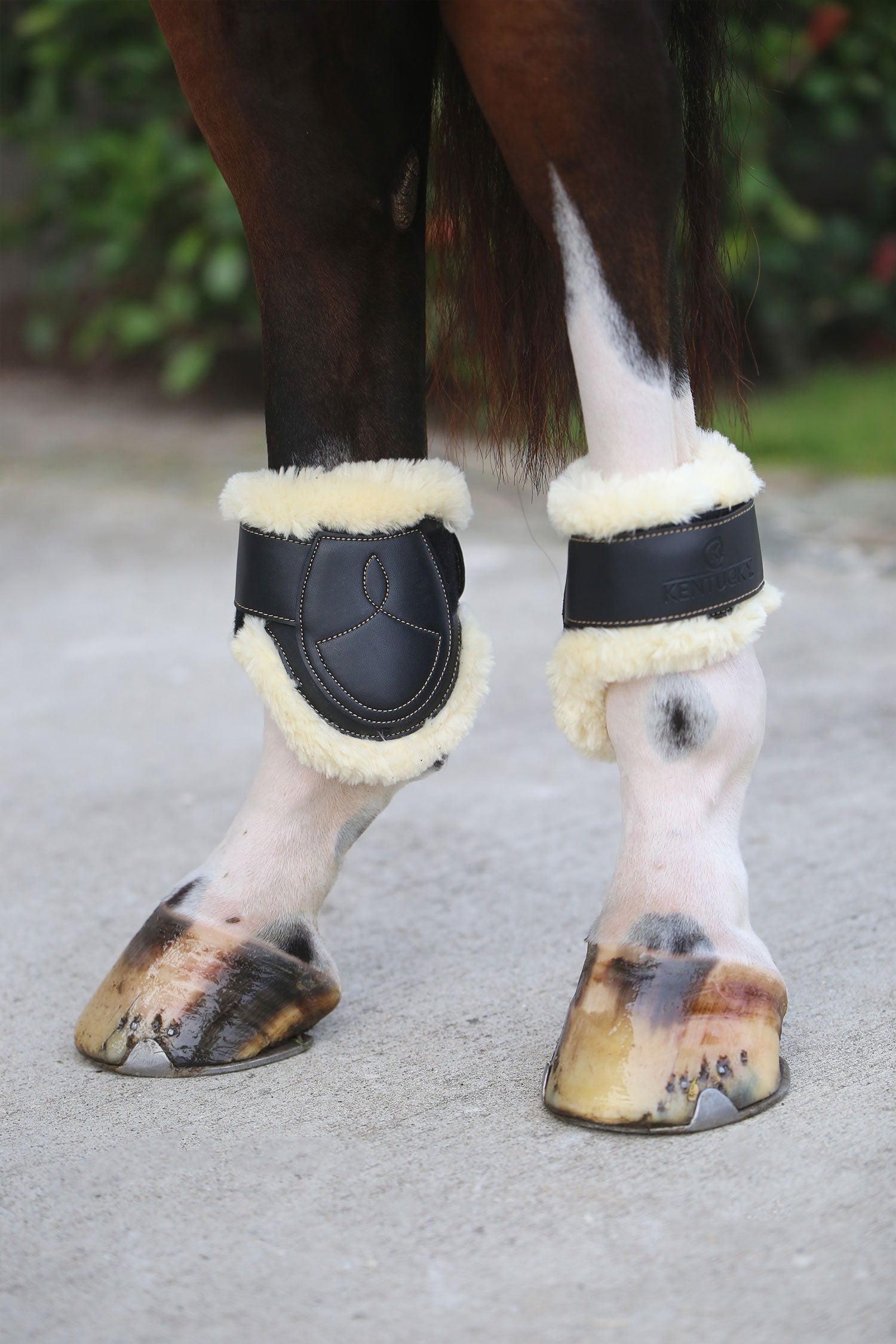 Elegant and sleek finish with detailed stitching. Perfect fit for comfort and protection. Ventilation system. Velcro fastening for easy on and off. (Young horse and FEI approved) Imitation leather and artificial sheepskin. Machine washable at 30° (No tumble dryer).