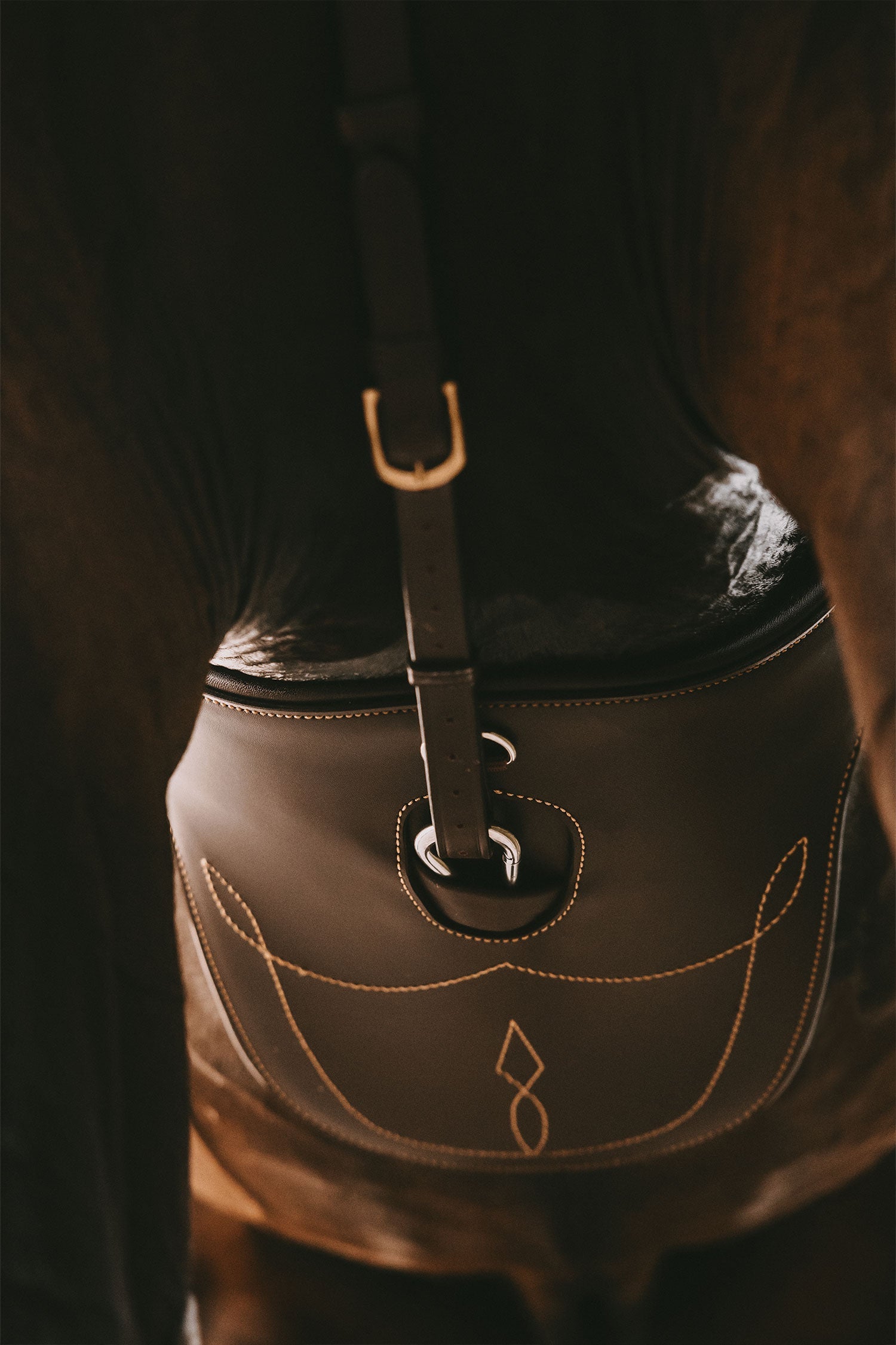 La sangle bavette est fabriquée en cuir synthétique qui n'absorbe ni la saleté, ni la sueur, ni l'eau, ce qui la rend particulièrement durable et facile à entretenir. De plus, le matériau conserve sa couleur et ne s'abîme pas facilement.