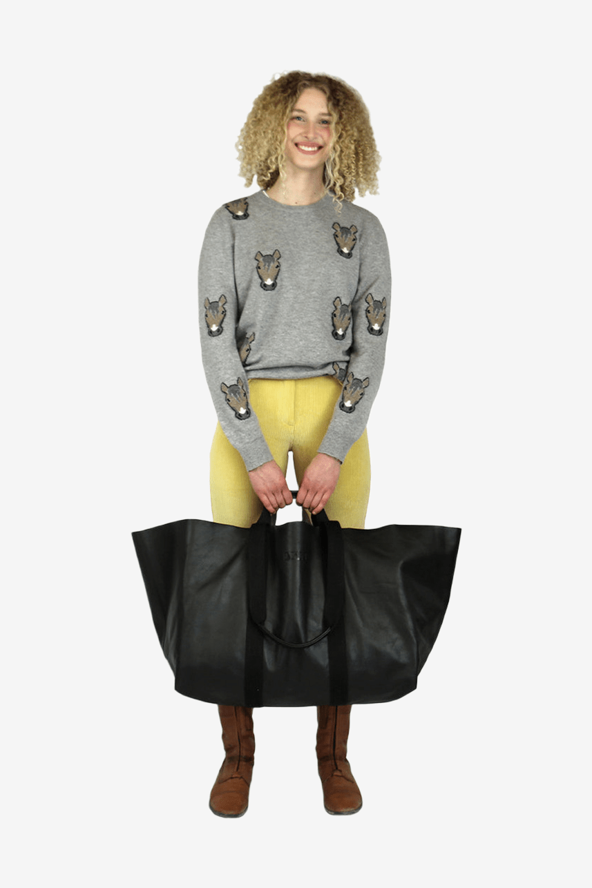 Notre plus grand Hay Bag – un sac cabas luxueux en cuir tanné végétal. Remplacez les grands sacs en plastique bleus et emportez tout et plus encore dans ce spacieux sac en cuir de 71 litres. Le sac est non doublé, sans boucles ni fermeture éclair. Parfait pour y jeter tout ce dont vous avez besoin pour un week-end à la campagne, des compétitions ou les activités des enfants.
