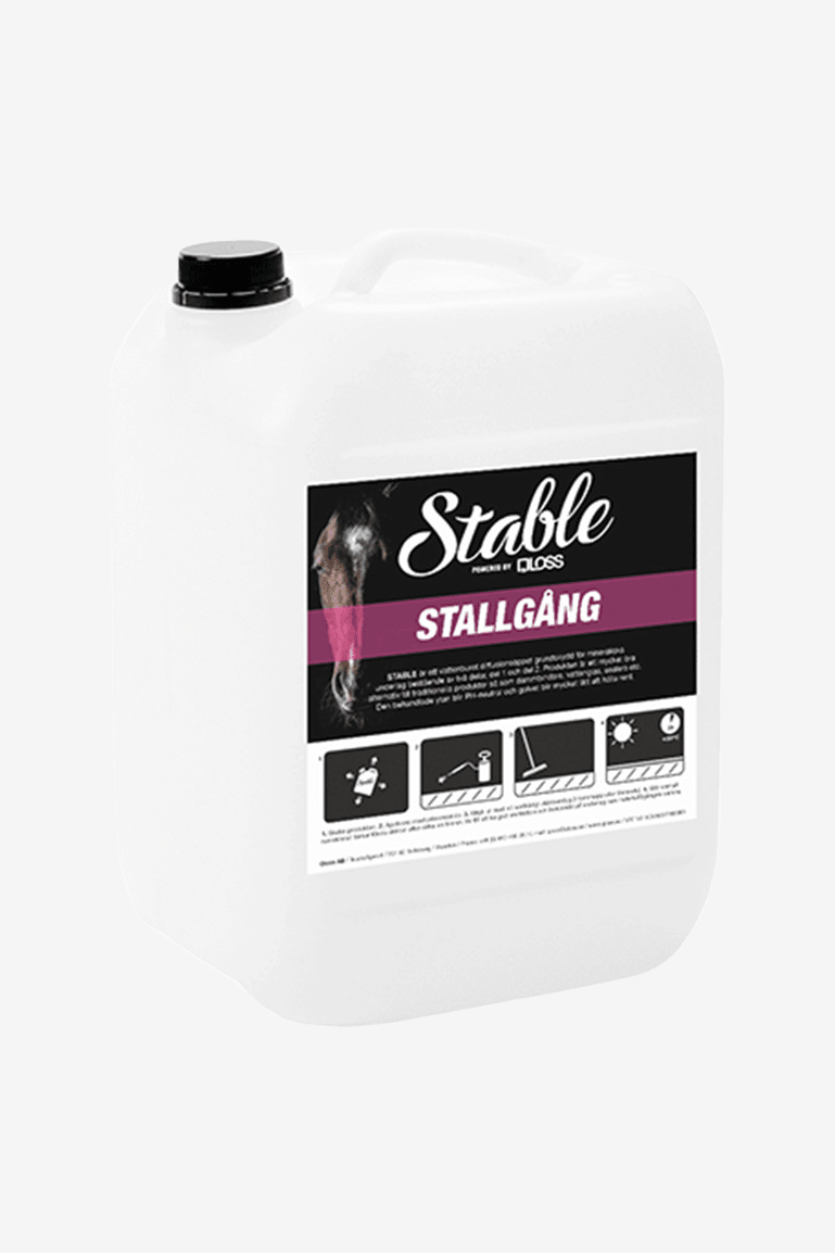 Le produit pénètre profondément dans le support et fixe la poussière, empêchant ainsi les particules de poussière de remonter du béton et de tourbillonner dans l’air lorsque, par exemple, vous balayez votre allée d’écurie. En plus de ses propriétés anti-poussière, Stable Aisle prolonge également la durée de vie de votre sol d’écurie et résiste quelque peu aux taches. Vous constaterez également que le sol est plus facile à garder propre et que la qualité de l’air dans l’écurie s’améliore. Stable Aisle est fabriqué en Suède et est à la fois facile à utiliser et respectueux de l’environnement.