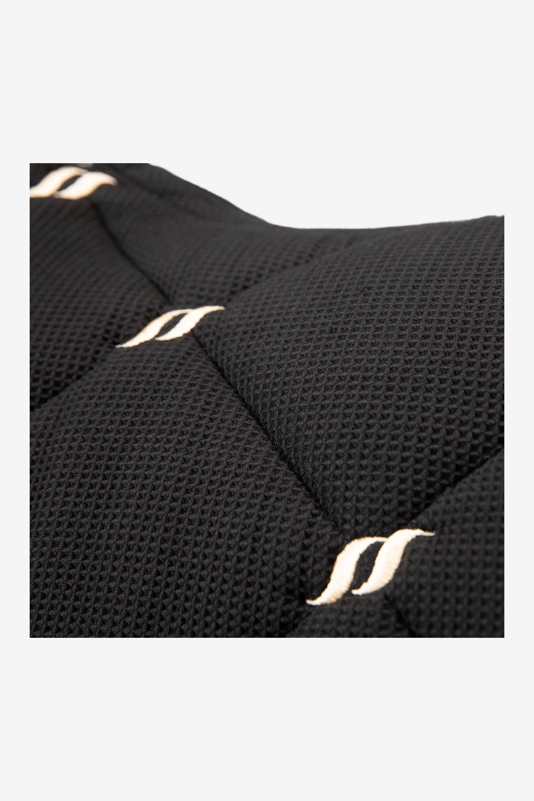 Schabraket har två olika fyllningar för att dämpa och absorbera stötar, samt ge god ventilation med andningsförmåga. Perfekt passform för hoppsadeln. Tillverkad med Back On Tracks välkända No. I design för schabrak, som är rejält upphöjd över ryggrad och manke för att ge mer utrymme och minska tryck.