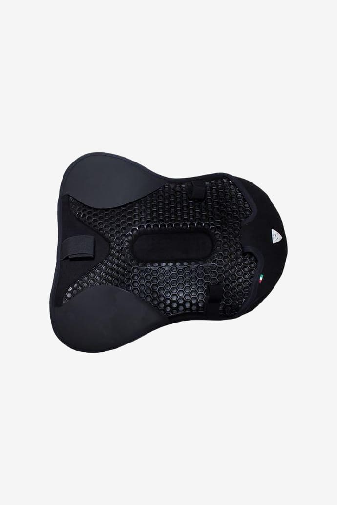 Acavallos anti-glid gel som finns på undersidan av dessa överdrag stöttar ryttarens överkropp genom att stabilisera sittbenen och förhindra onödiga rörelser samtidigt som ryttaren får ett bra grepp i sadeln. Utöver det så reducerar den stötabsorberande gelen kraftigt stötarna i nedre delen av ryggen.