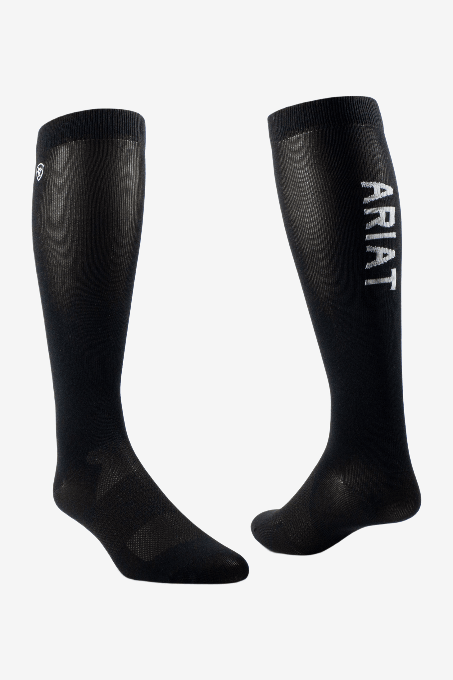 Chaussettes de chez Ariat, conçues pour s'adapter parfaitement sous les bottes d'équitation. Chaussettes fines offrant un grand confort pendant la monte. En plus de leur design fin, le tissu possède des propriétés antibactériennes et évacuant l'humidité pour garder vos pieds confortables.