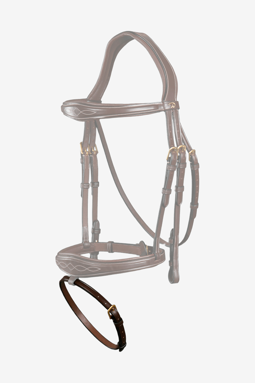 Lanière de muserolle amovible pour bridon de la collection Dyon. Largeur 13 mm avec boucle couleur laiton.
