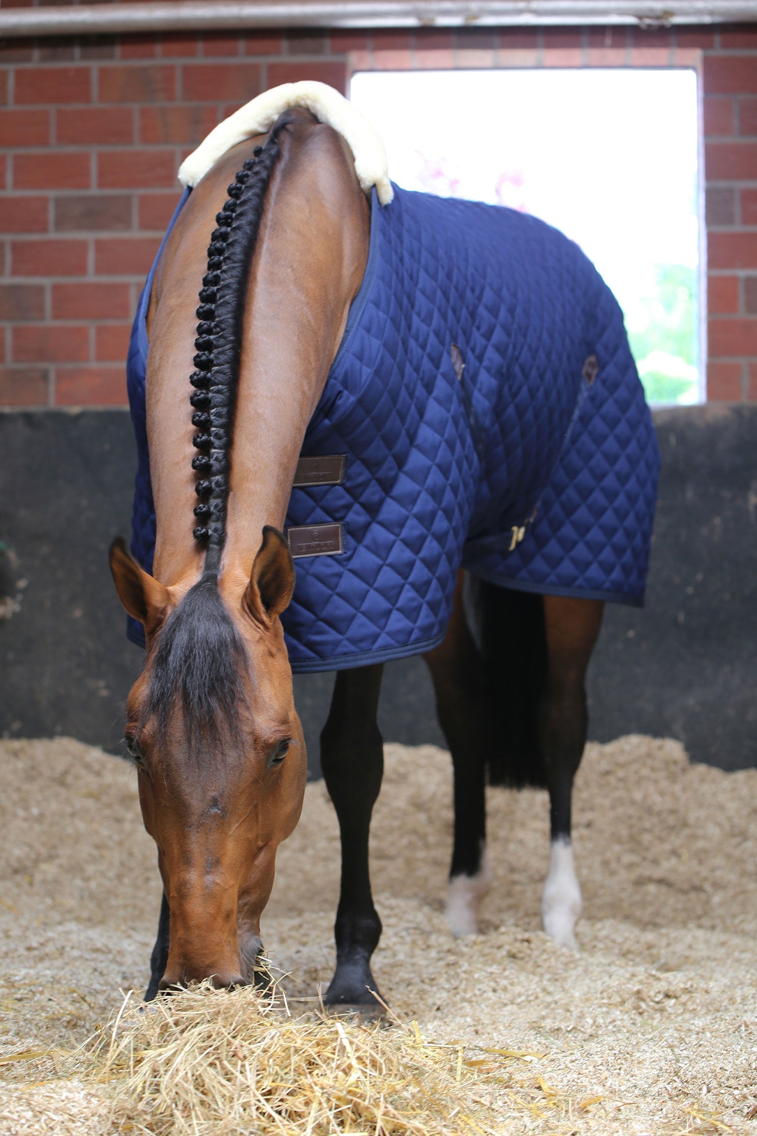 La fourrure de lapin artificielle crée de petites poches d'air qui retiennent la chaleur corporelle du cheval. Grâce aux poils doux de la fourrure de lapin artificielle, les chevaux obtiennent un pelage brillant et soyeux. La fausse peau de mouton recouvre élégamment une partie de l'encolure et offre à la fois un confort optimal et une apparence très élégante.