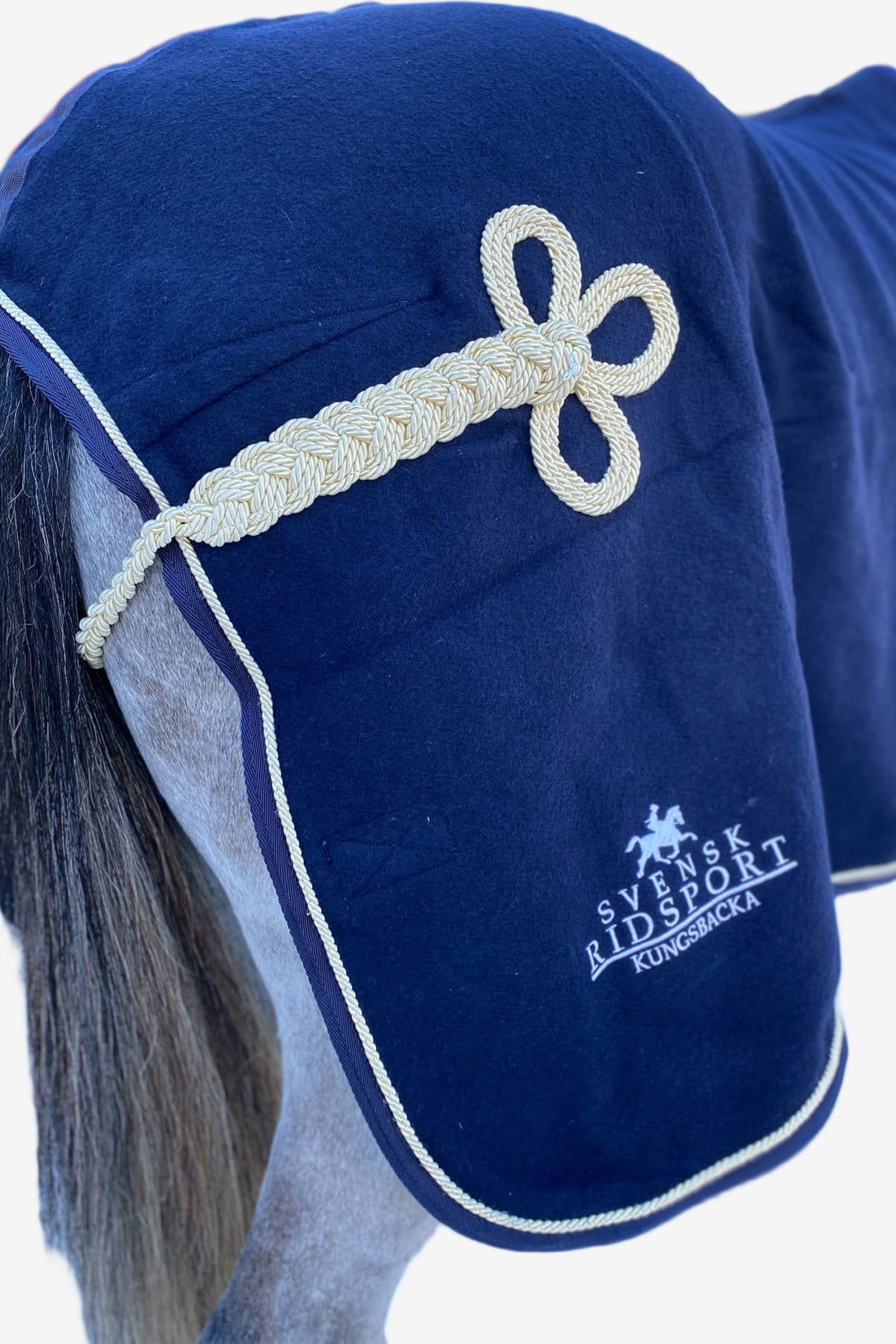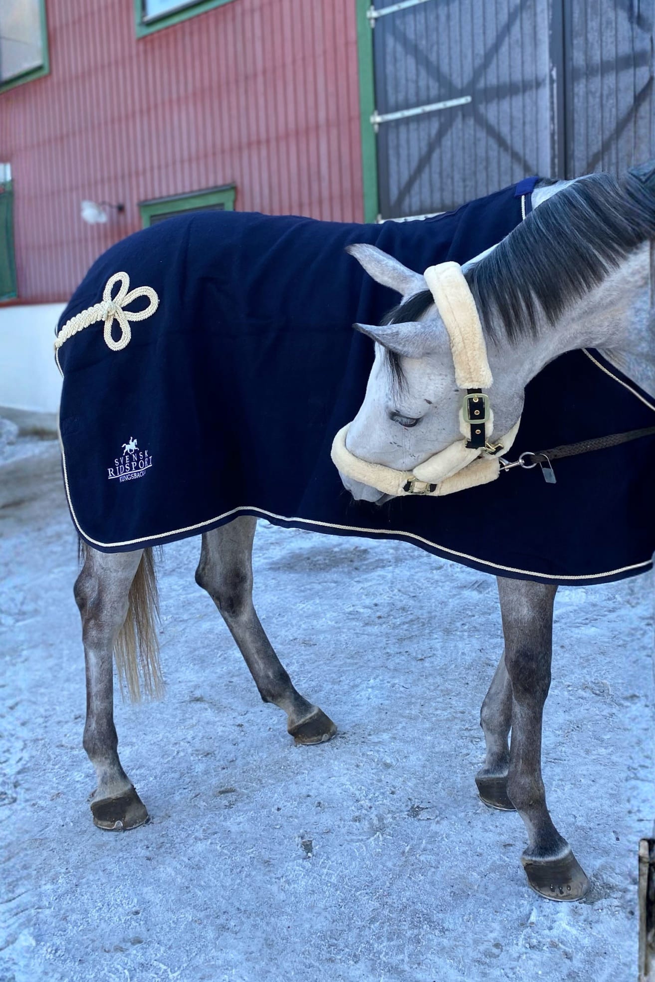 Couverture en laine de LW. Belle couverture en laine joliment décorée avec un passepoil et une tresse de queue. Une sangle ventrale facilement réglable en longueur pour un ajustement optimal. Boucle de poitrail simple qui s’ouvre rapidement et facilement. Logo de la Fédération Équestre Suédoise finement brodé sur un côté dans une couleur contrastante.