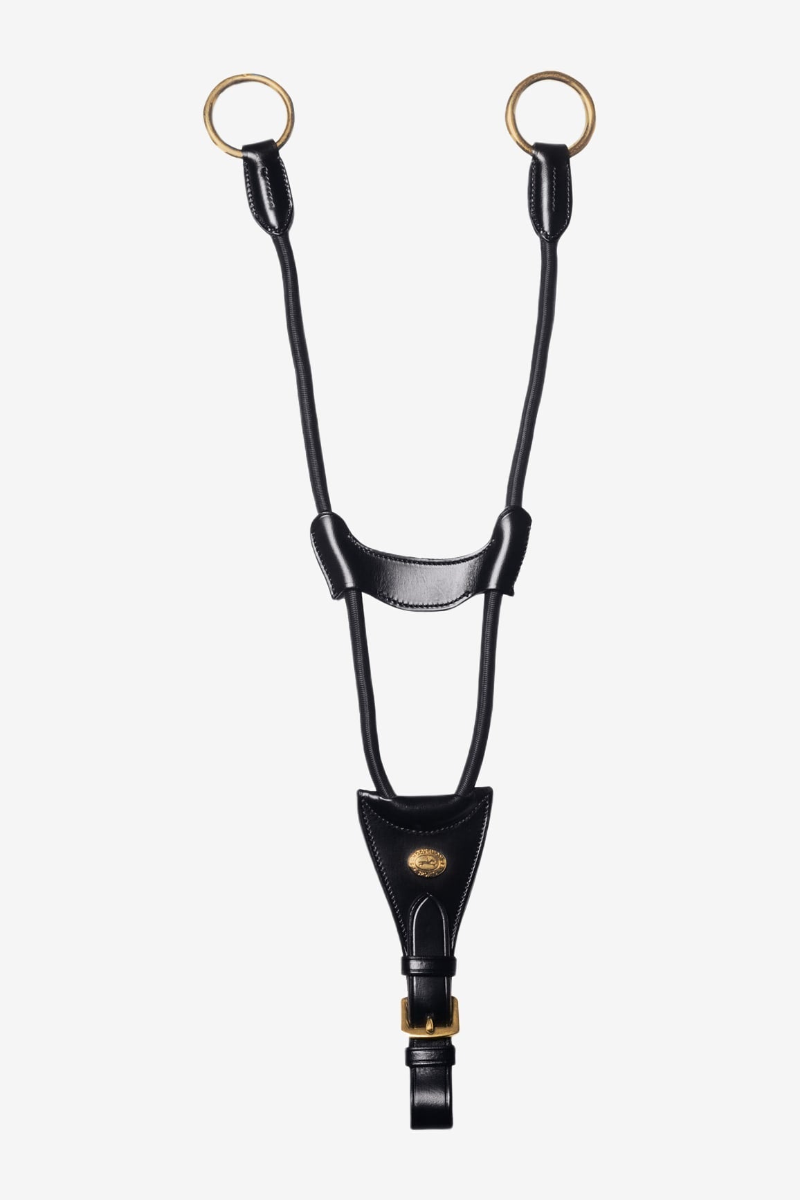 La sangle en cuir permet d'ajuster la distance entre les anneaux de la martingale.