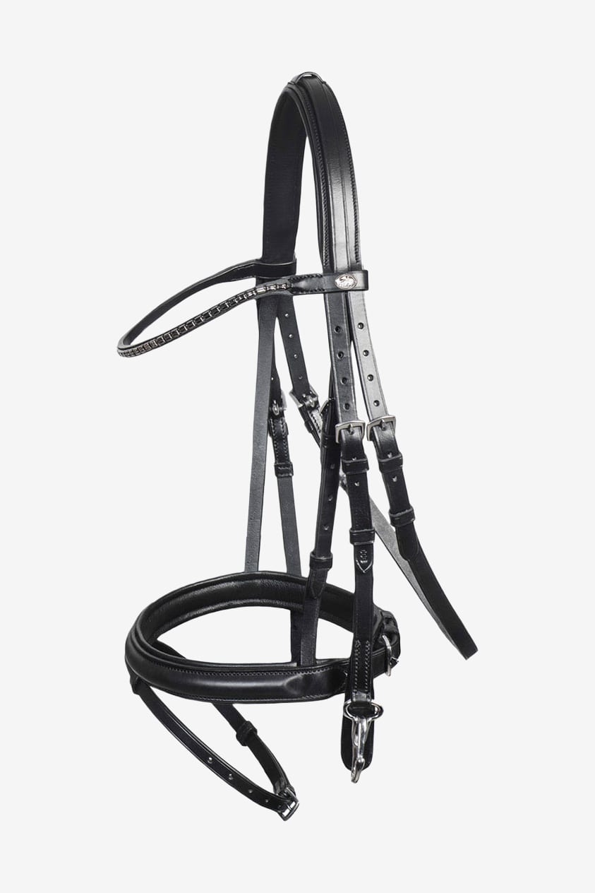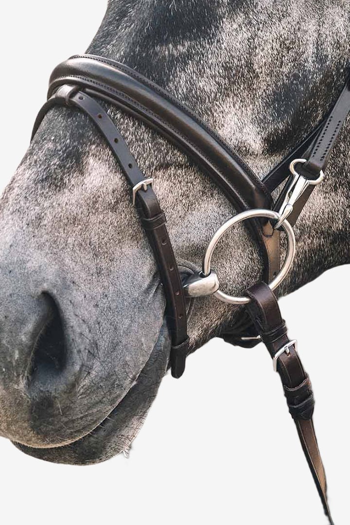 Bridon luxueux de Bridle Stuttgart, de forme anatomique et fabriqué en cuir de haute qualité avec un rembourrage doux. Le bridon est conçu de manière pratique avec des attaches rapides pour le mors, ce qui facilite le changement de mors.