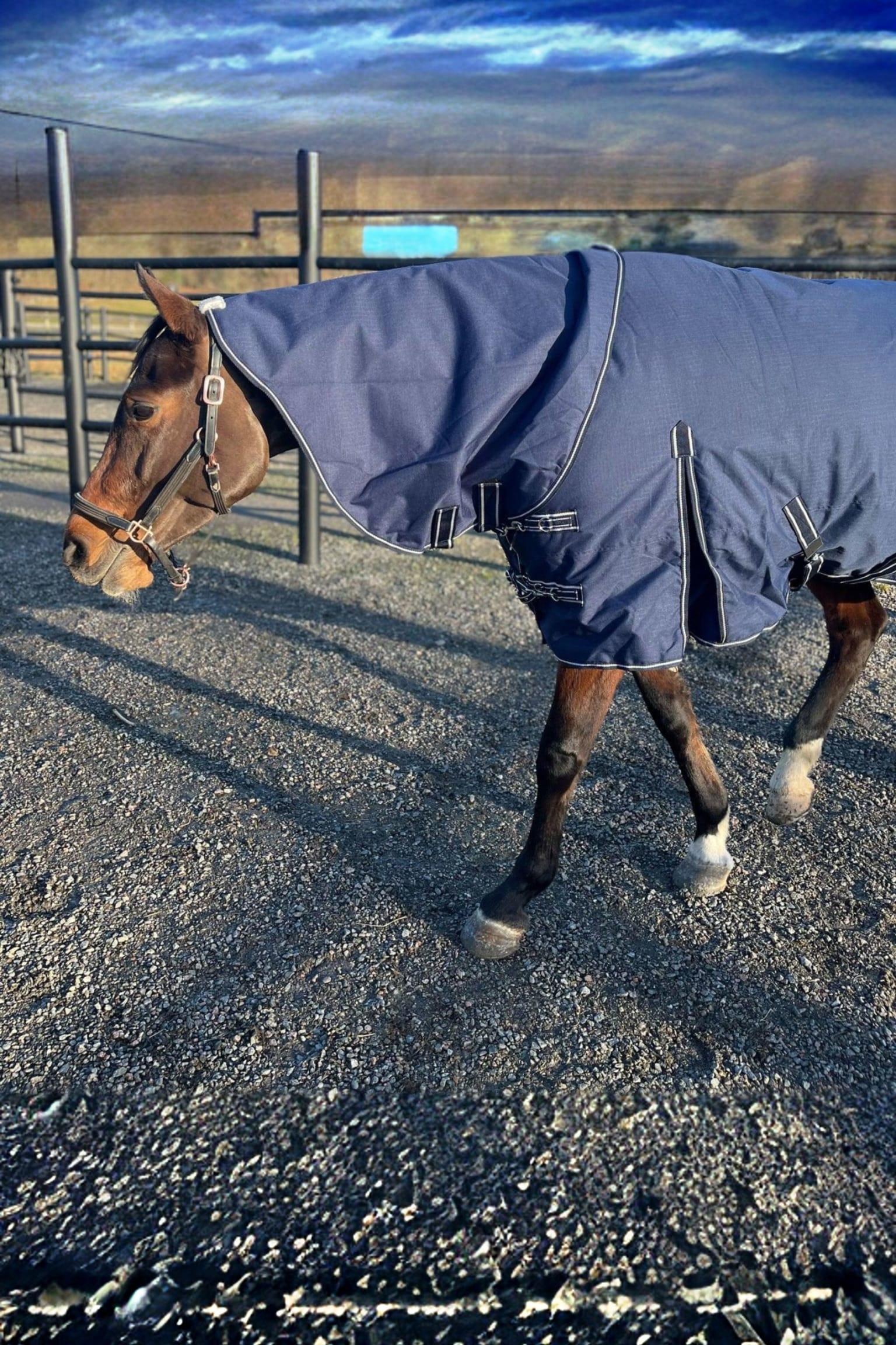 Buitendeken met 200g vulling en afneembare hals. 600 denier buitenmateriaal. Glanzende binnenvoering maakt de deken gemakkelijk schoon te houden en vermindert het risico op schuren. Schouderplooien aan de zijkanten voor meer bewegingsvrijheid en comfort voor het paard. Kruissingels onder de buik en bilkoorden achteraan houden de deken stevig op zijn plaats. Dubbele gespen aan de voorkant met musketonhaken voor eenvoudige aanpassing van de pasvorm.