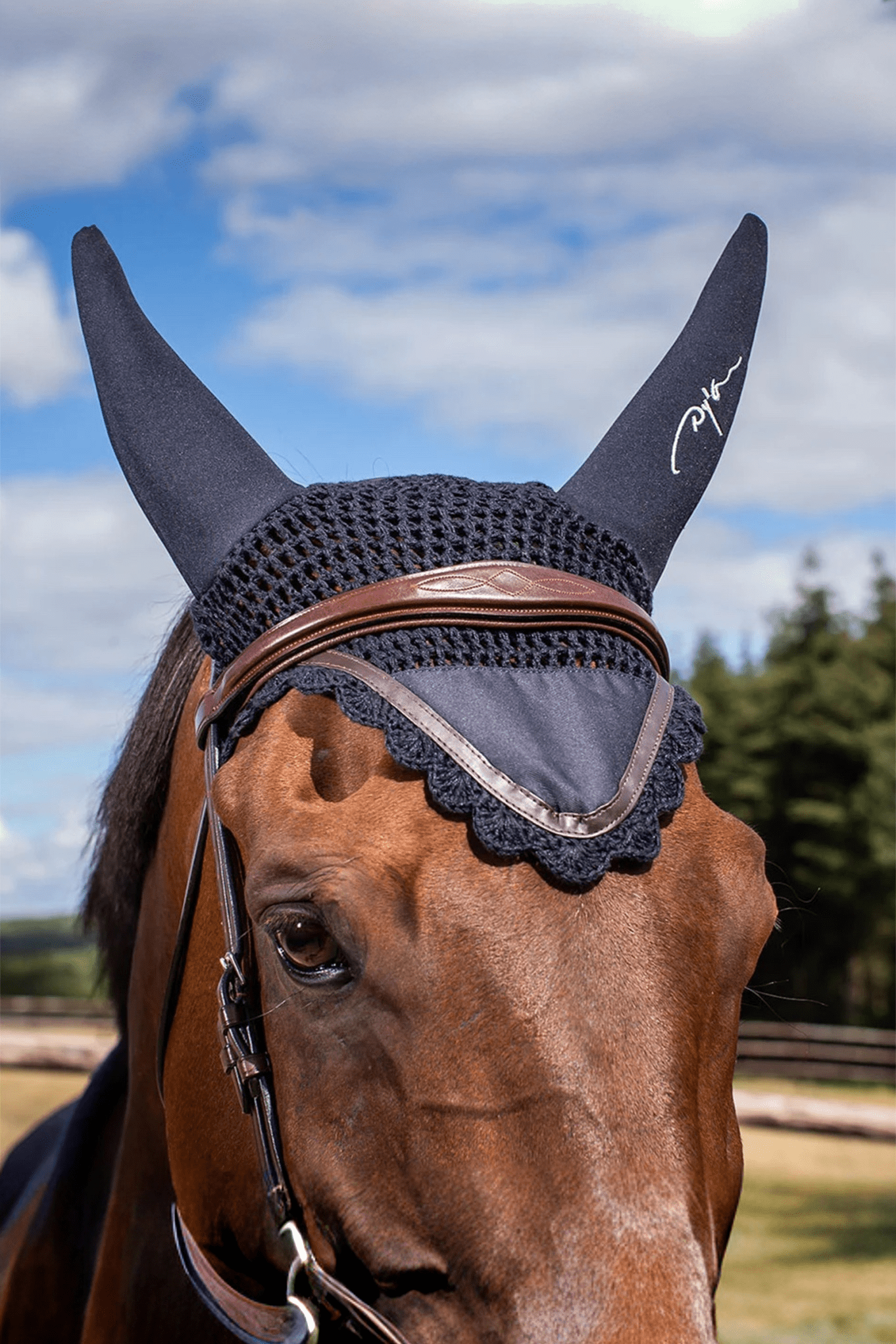Het Dyón-logo is op het linker oor geborduurd.